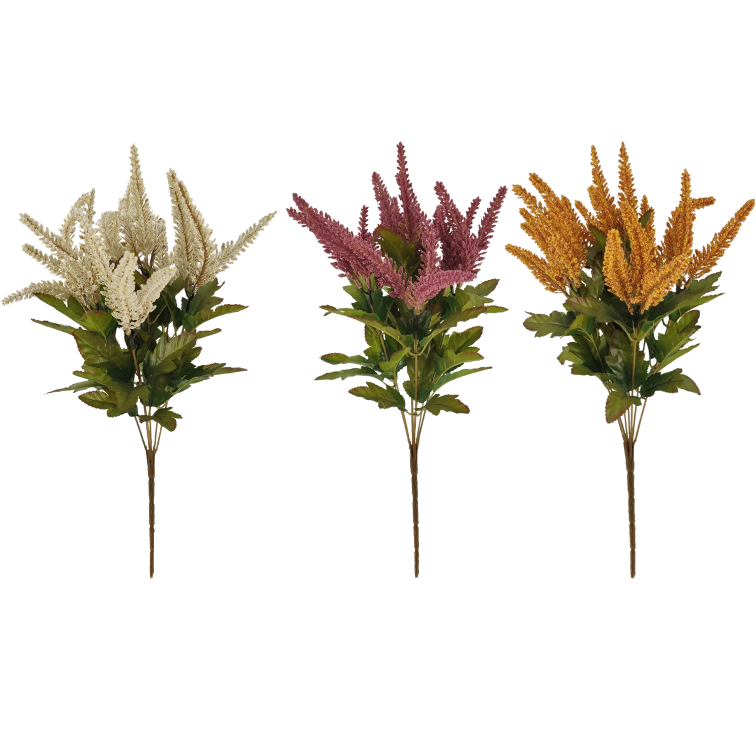 Dekoracyjny sztuczny bukiet wrzosu o wysokości 44 cm doda wnętrzu naturalnego uroku bez konieczności pielęgnacji. Oferuje mix kolorów (kremowy/żółty, fioletowy, pomarańczowy) oraz realistycznie odwzorowane kłosy i liście, które wyglądają świeżo przez cały rok. Idealny do wazonów, aranżacji oraz sezonowych dekoracji w domu, biurze czy na wydarzeniach.