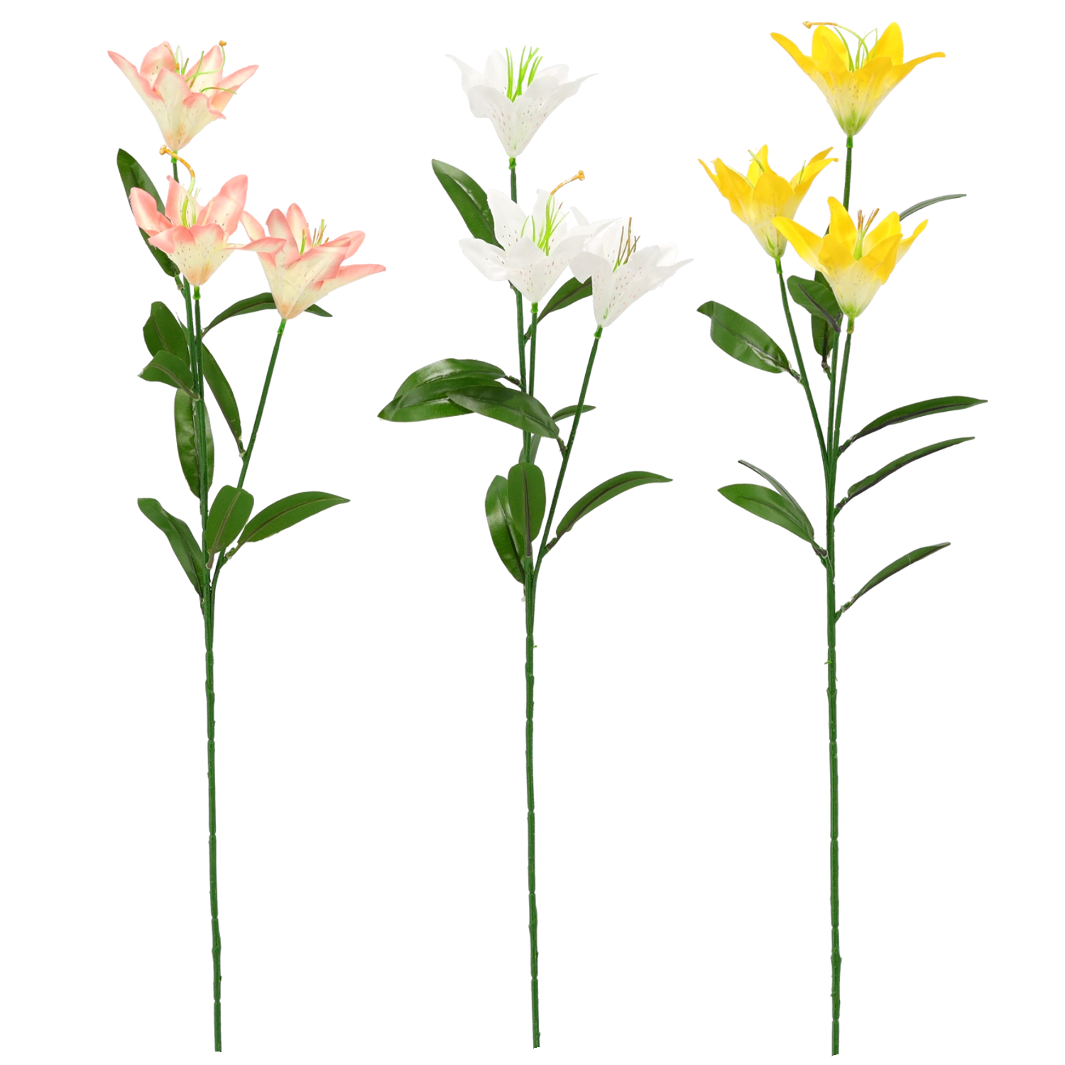 Elegancka i realistyczna sztuczna lilia z trzema kwiatami o wysokości 64 cm doskonale uzupełni wystrój domu, biura i przestrzeni komercyjnych. Dzięki wiernym detalom, miksowi kolorów i zerowym wymaganiom pielęgnacyjnym wygląda świeżo przez cały rok.