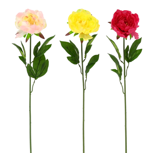 Elegancka i realistyczna sztuczna piwonia o długości 65 cm rozświetli każde wnętrze. Dzięki wiernie odwzorowanym, pełnym kwiatom i naturalnie wyglądającym liściom sprawia wrażenie żywej, nie wymaga żadnej pielęgnacji i jest trwała oraz odporna. Dostępna w miksie kolorów (różowy, żółty, czerwony) dla łatwego dopasowania do dekoracji.