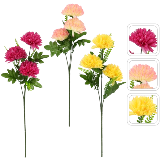 Ta sztuczna chryzantema wiernie naśladuje żywy kwiat – od szczegółowo uformowanych płatków po realistyczne liście. Dzięki wytrzymałemu materiałowi zachowuje kolor i kształt przez długi czas, bez podlewania czy specjalnej pielęgnacji.