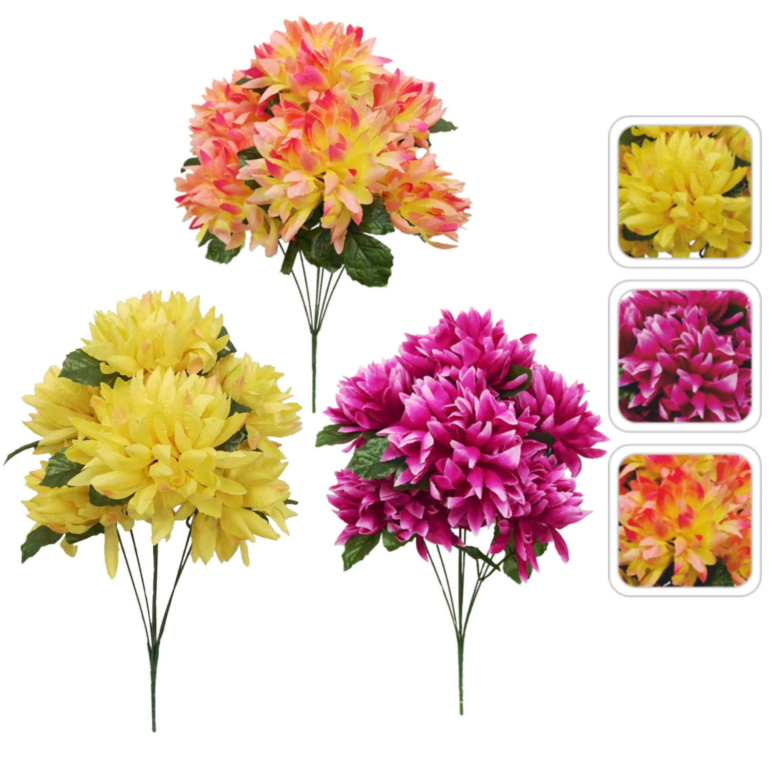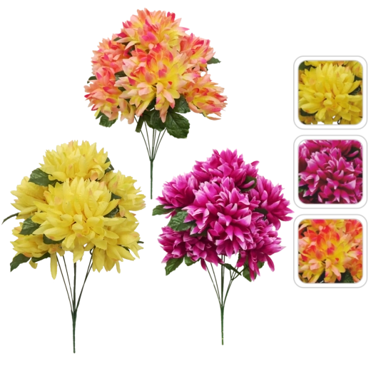 Wiarygodnie wykonany bukiet chryzantem to idealny wybór dla osób, które chcą cieszyć się pięknem kwiatów bez podlewania i pielęgnacji. Wysoka jakość wykonania oraz realistyczne detale płatków podkreślają naturalny efekt w wazonie i dekoracjach.