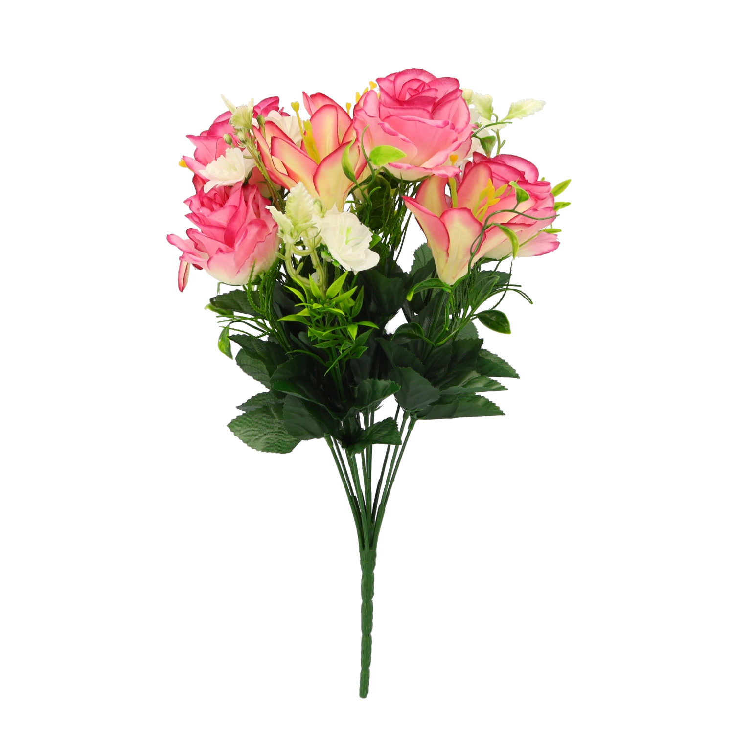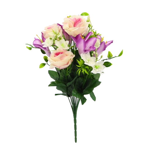 Stylowy sztuczny bukiet, który łączy klasyczne róże i eleganckie lilie z bujną zielenią. Dzięki wymiarom 43 × 25 × 25 cm oraz miksowi kolorów prezentuje się naturalnie i świeżo przez cały rok. Realistyczne detale, trwałe materiały i zerowe wymagania pielęgnacyjne czynią go idealną dekoracją do salonu, sypialni, biura i recepcji.