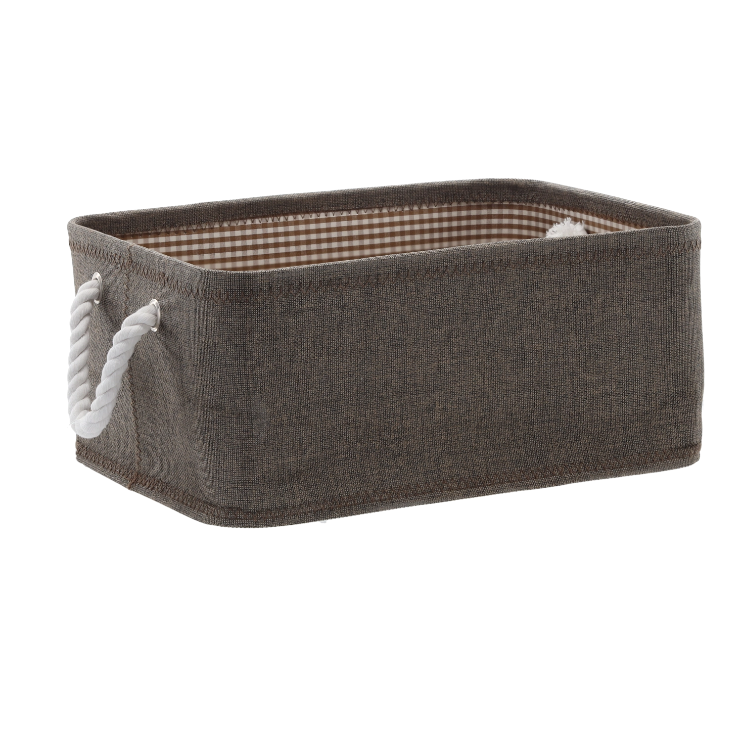Tekstylny kosz do przechowywania z linowymi uchwytami 30 × 40 × 18 cm brązowy