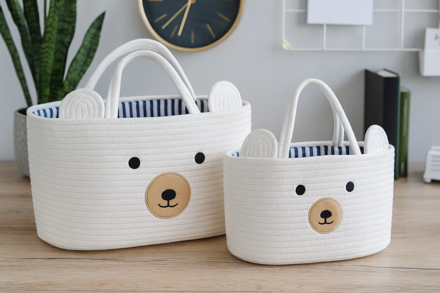 Szukasz stylowego i funkcjonalnego rozwiązania do przechowywania zabawek, ubrań czy drobiazgów? Ten biały koszyk z uroczym motywem misia łączy praktyczną przestrzeń do przechowywania z dekoracyjnym designem. Dzięki dwóm solidnym uchwytom łatwo przeniesiesz go między pomieszczeniami, a jego usztywniane ścianki trzymają kształt.