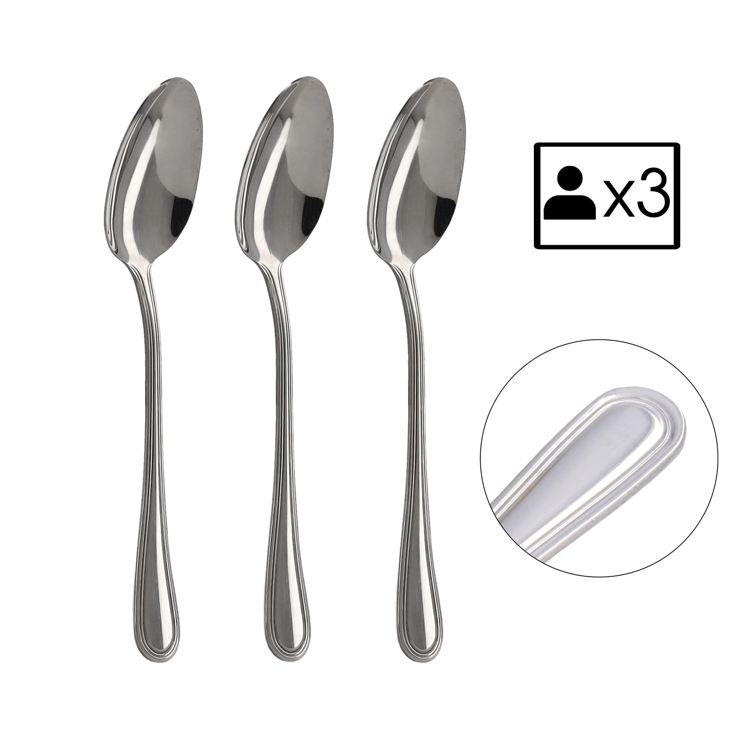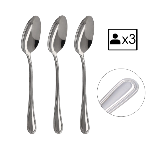 Praktyczne opakowanie 3 sztuk jest idealne do uzupełnienia istniejącego zestawu lub jako szybkie rozwiązanie dla mniejszych gospodarstw domowych. Łyżki mają wyważoną wagę i wygodnie leżą w dłoni, dzięki czemu jedzenie jest komfortowe i stylowe.