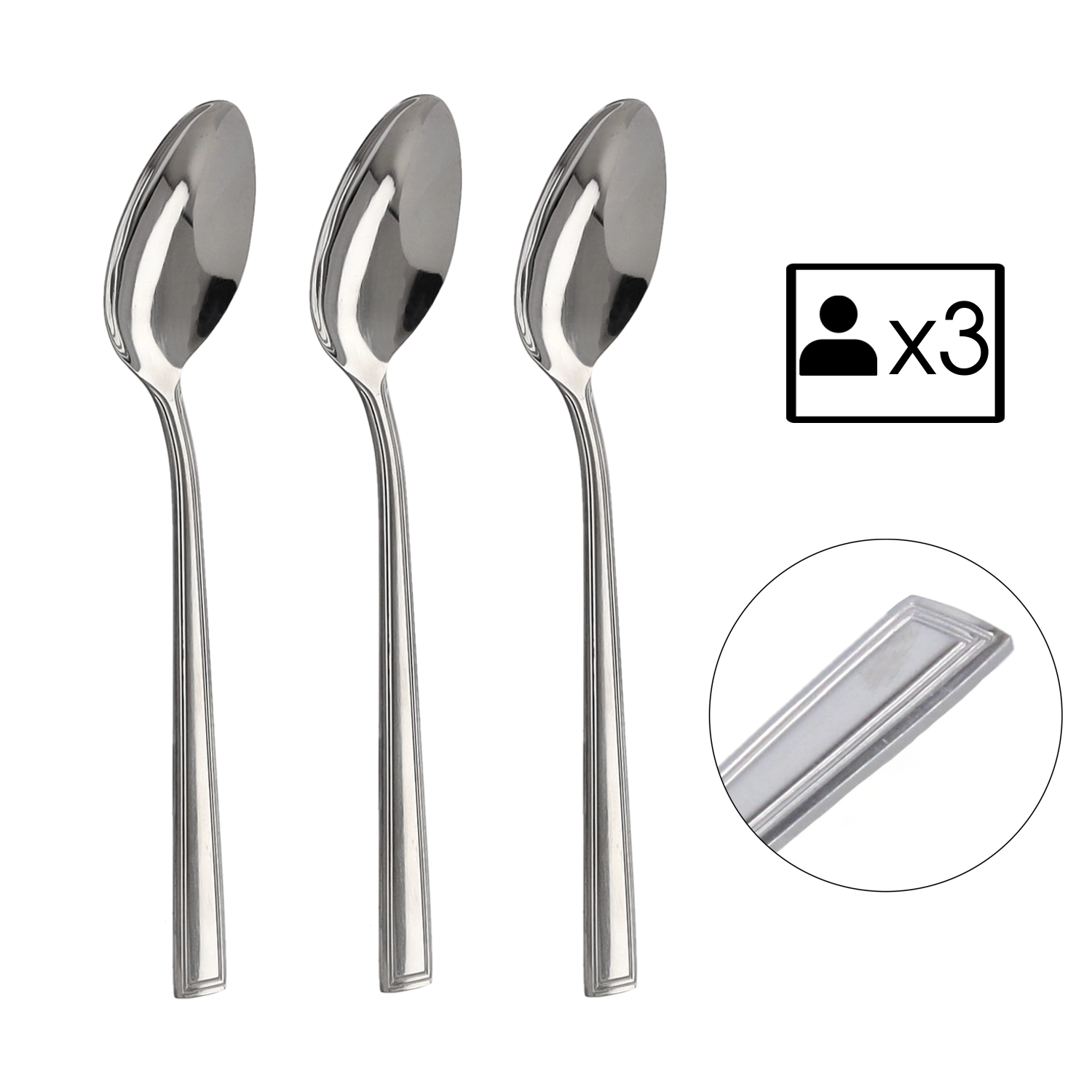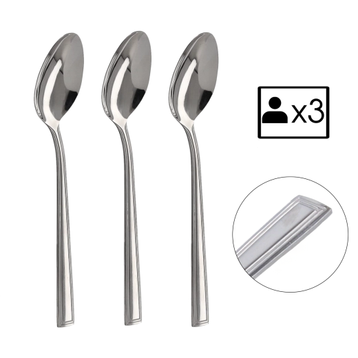 Elegancki zestaw trzech łyżek stołowych Milano łączy ponadczasowy styl i praktyczność na co dzień oraz na odświętny stół. Łyżki z wysokiej jakości metalu o długości 19,5 cm oferują wysoką trwałość, ergonomiczny chwyt i łatwe czyszczenie w zmywarce. Delikatnie zdobiona rękojeść nadaje sztućcom sofistykowany wygląd i świetnie komponuje się z różnymi stylami zastawy stołowej.
