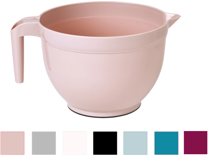 Wytrzymałe tworzywo BPA-free jest bezpieczne w kontakcie z żywnością i znosi intensywne użytkowanie. Antypoślizgowa gumowa podstawa utrzymuje miskę stabilnie na miejscu, więc możesz mieszać nawet gęstsze masy bez przesuwania. Utrzymanie w czystości jest proste – miskę można myć w zmywarce, co oszczędza czas i wysiłek.