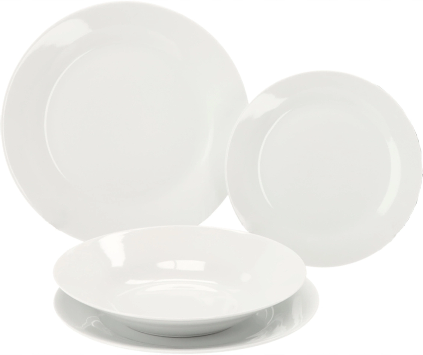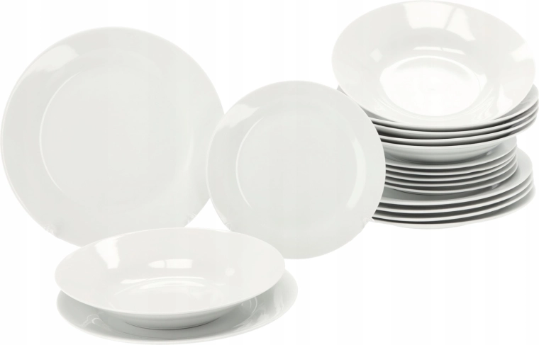 Ten okrągły zestaw obiadowy z wysokiej jakości porcelany łączy estetykę z praktycznością. Proste białe wykończenie pasuje do każdego wnętrza i świetnie komponuje się z dodatkami. Dzięki uniwersalnym wymiarom talerzy wygodnie podasz zupy, dania główne i desery.