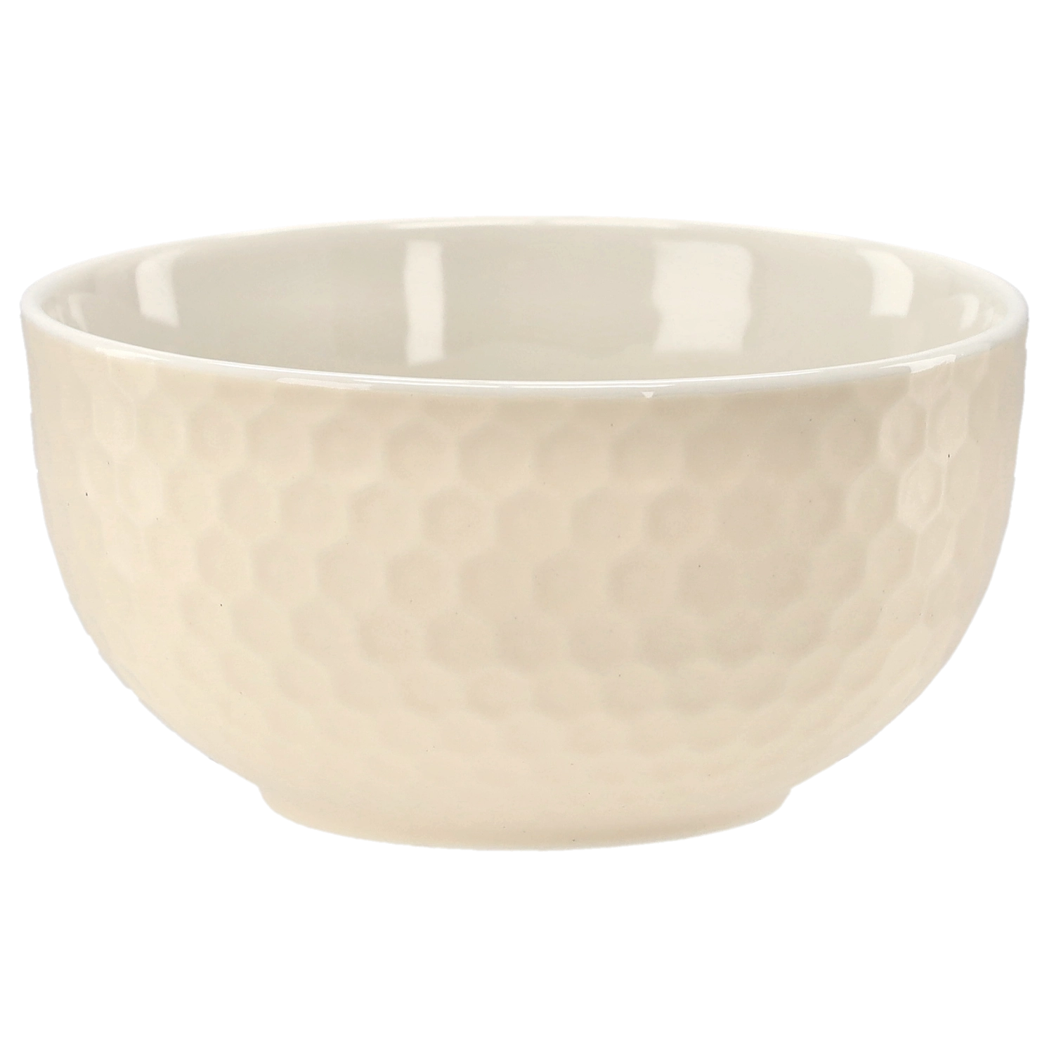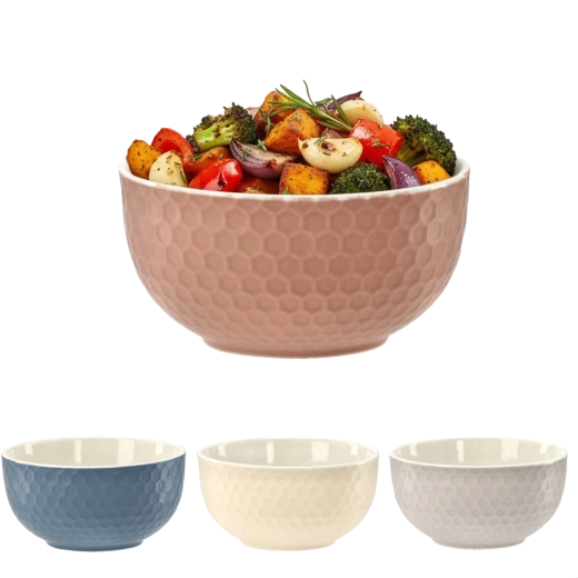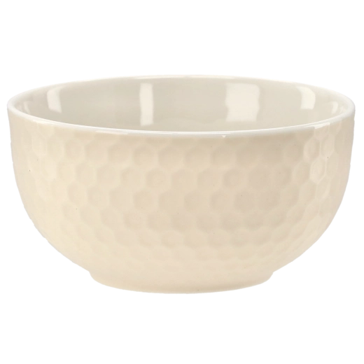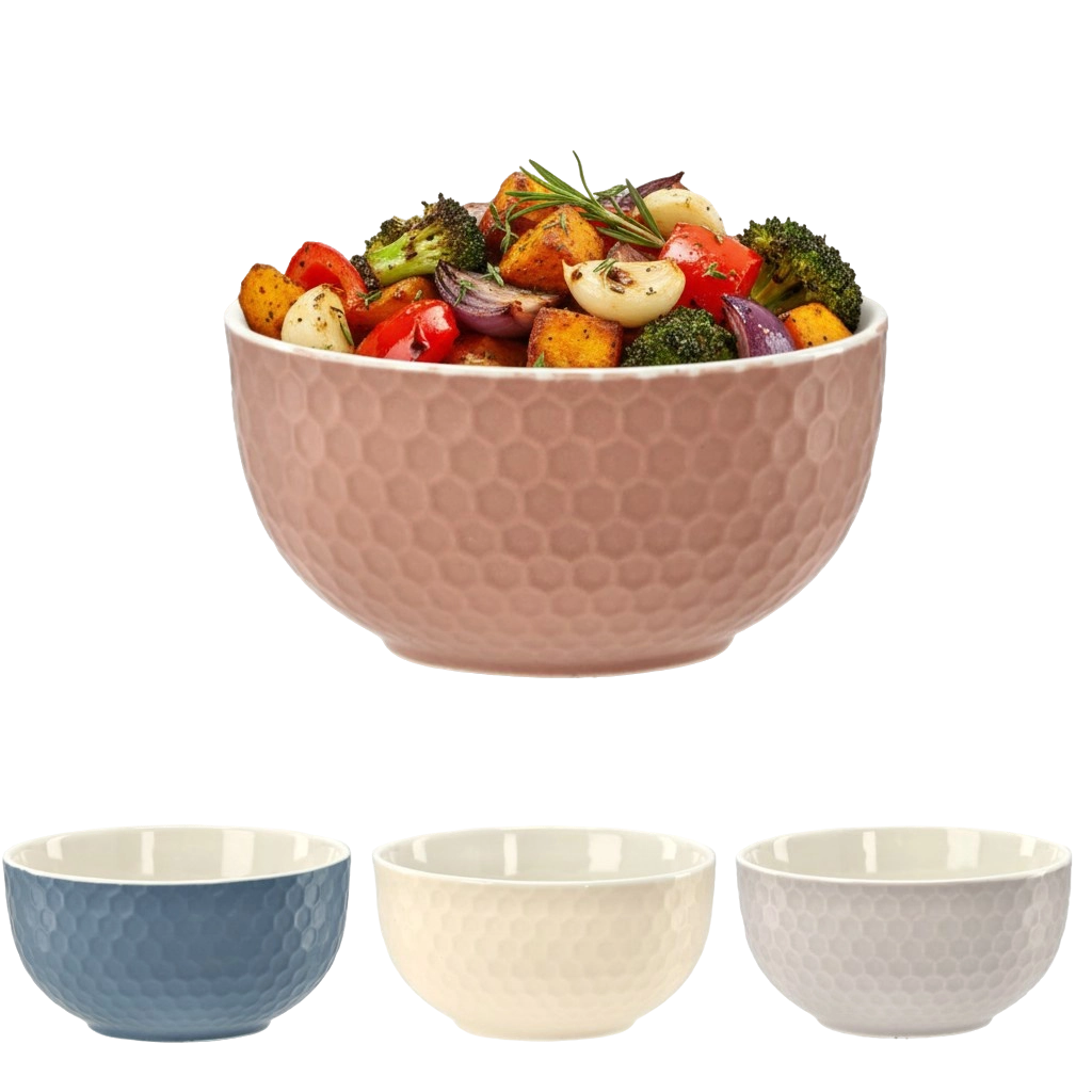 Reliefowa powierzchnia „honeycomb” jest nie tylko dekoracyjna, ale i praktyczna – miska wygodnie leży w dłoni i mniej się ślizga podczas serwowania.