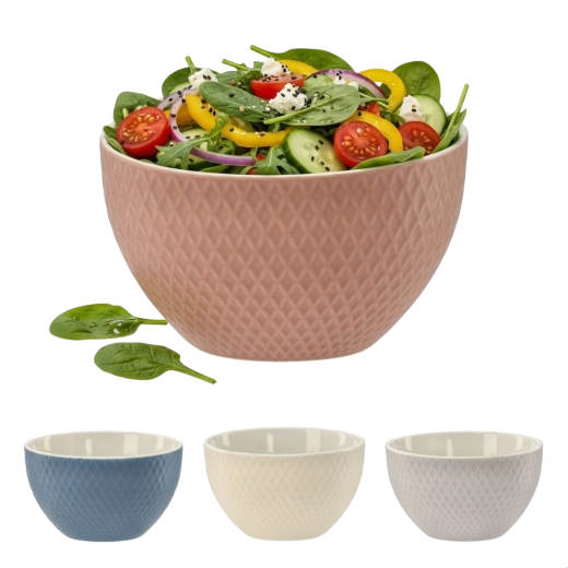 Delektuj się ulubionymi potrawami w porcelanowej misce z diamentowym reliefem, łączącej nowoczesny design i praktyczne zastosowanie. Wysokiej jakości porcelana gwarantuje długą żywotność i odporność na codzienne użytkowanie.
