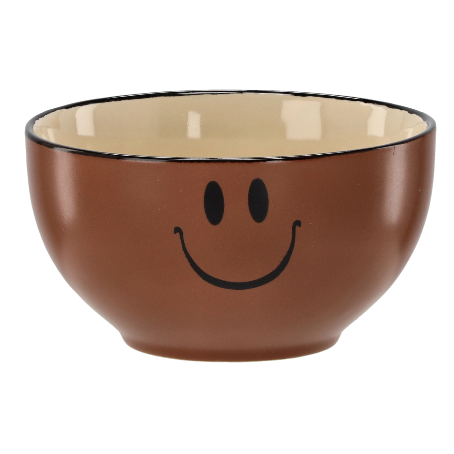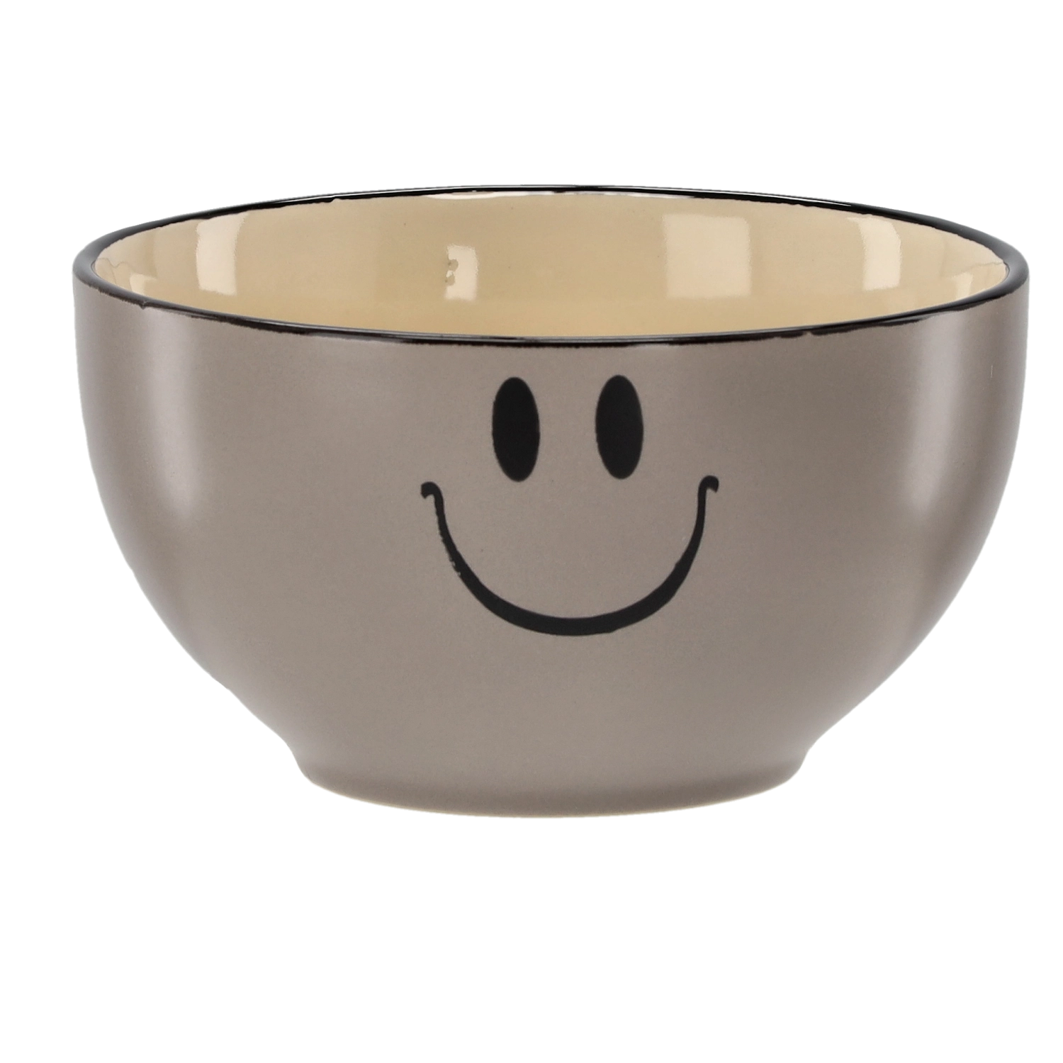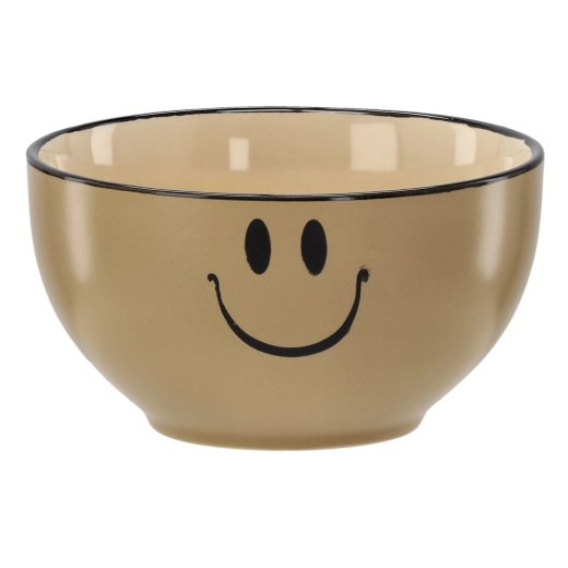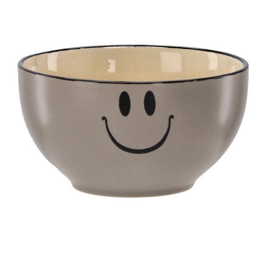 Stylowa ceramiczna miska o pojemności 550 ml z wesołym motywem smiley umili każde posiłki. Dzięki wysokiej jakości ceramice jest odporna na uszkodzenia, ma gładką powierzchnię ułatwiającą czyszczenie oraz uniwersalny rozmiar idealny na zupy, płatki śniadaniowe i przekąski. Dostępna w 4 wariantach kolorystycznych, więc z łatwością dopasujesz styl do swojego stołu.