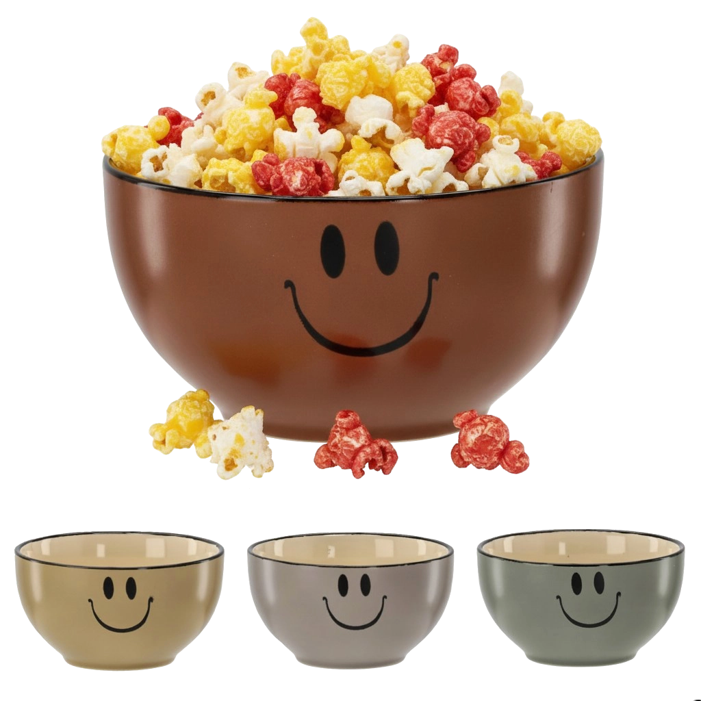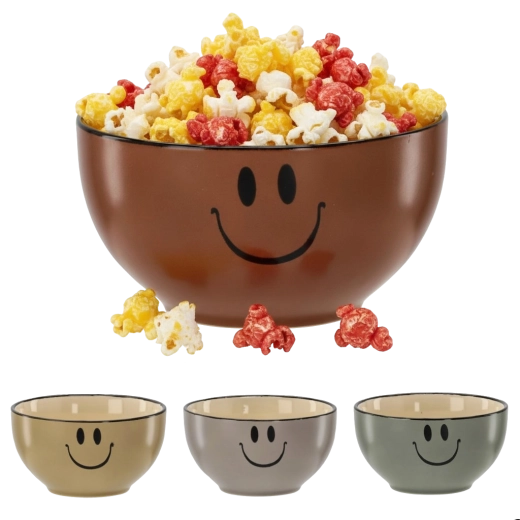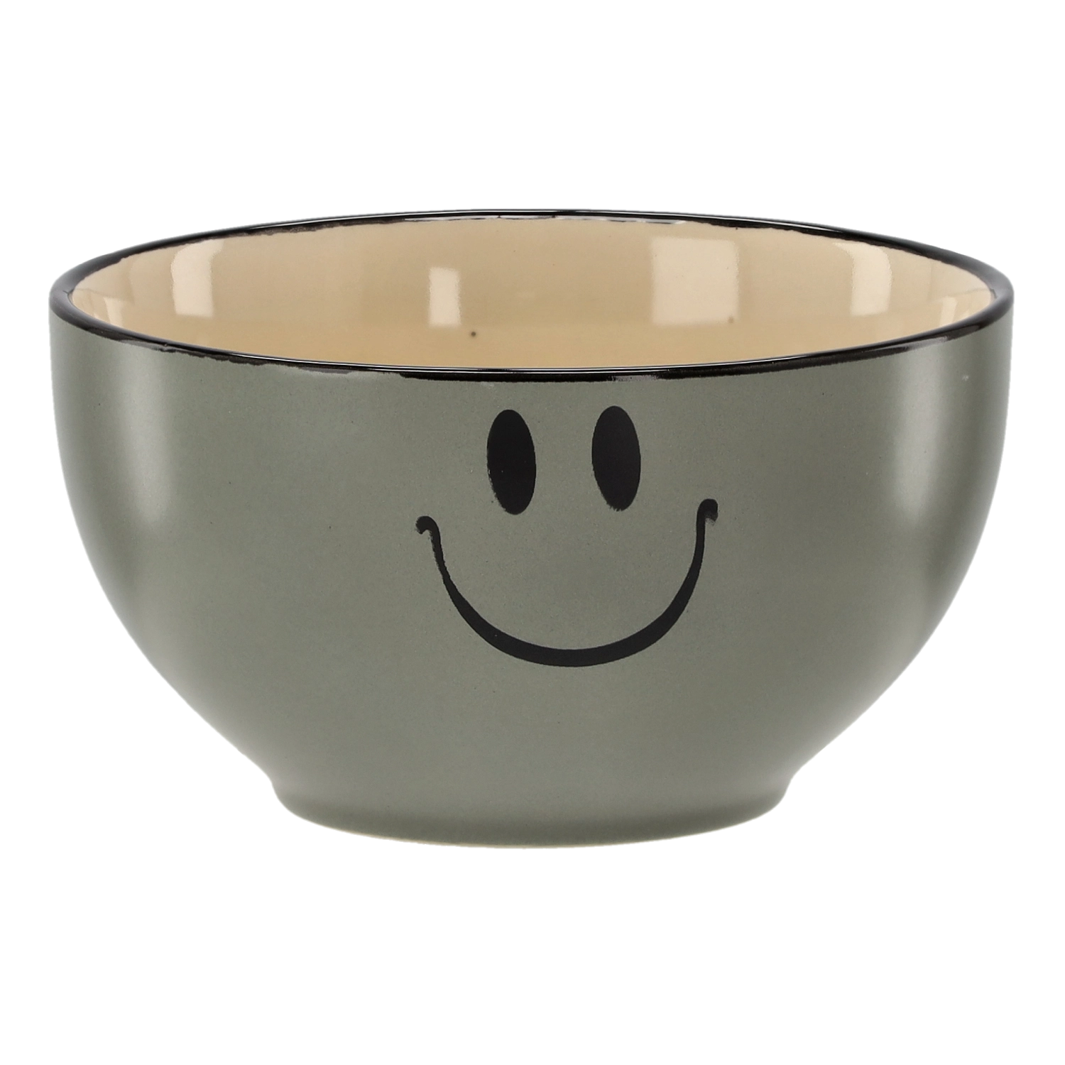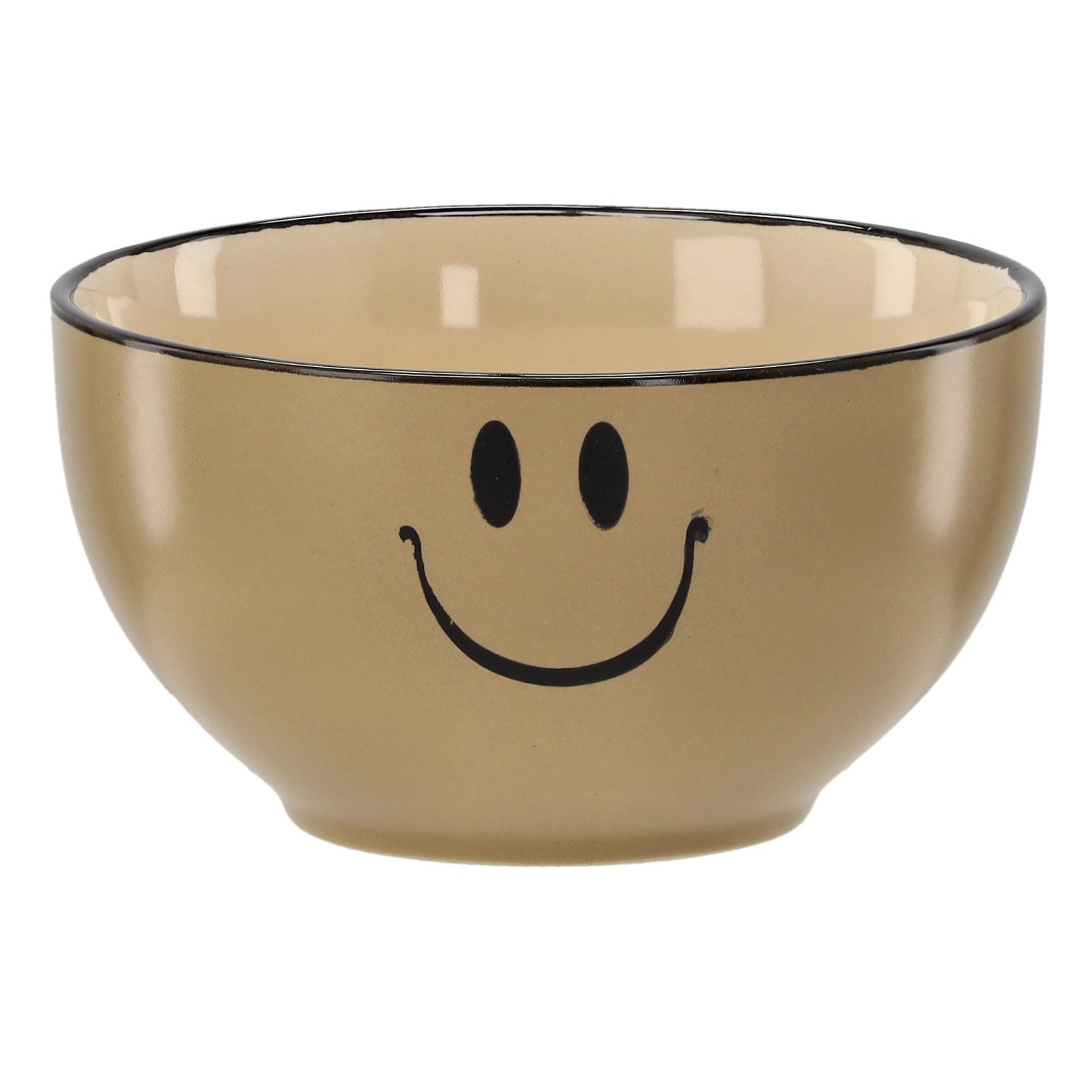 Stylowa ceramiczna miska o pojemności 550 ml z wesołym motywem smiley umili każde posiłki. Dzięki wysokiej jakości ceramice jest odporna na uszkodzenia, ma gładką powierzchnię ułatwiającą czyszczenie oraz uniwersalny rozmiar idealny na zupy, płatki śniadaniowe i przekąski. Dostępna w 4 wariantach kolorystycznych, więc z łatwością dopasujesz styl do swojego stołu.