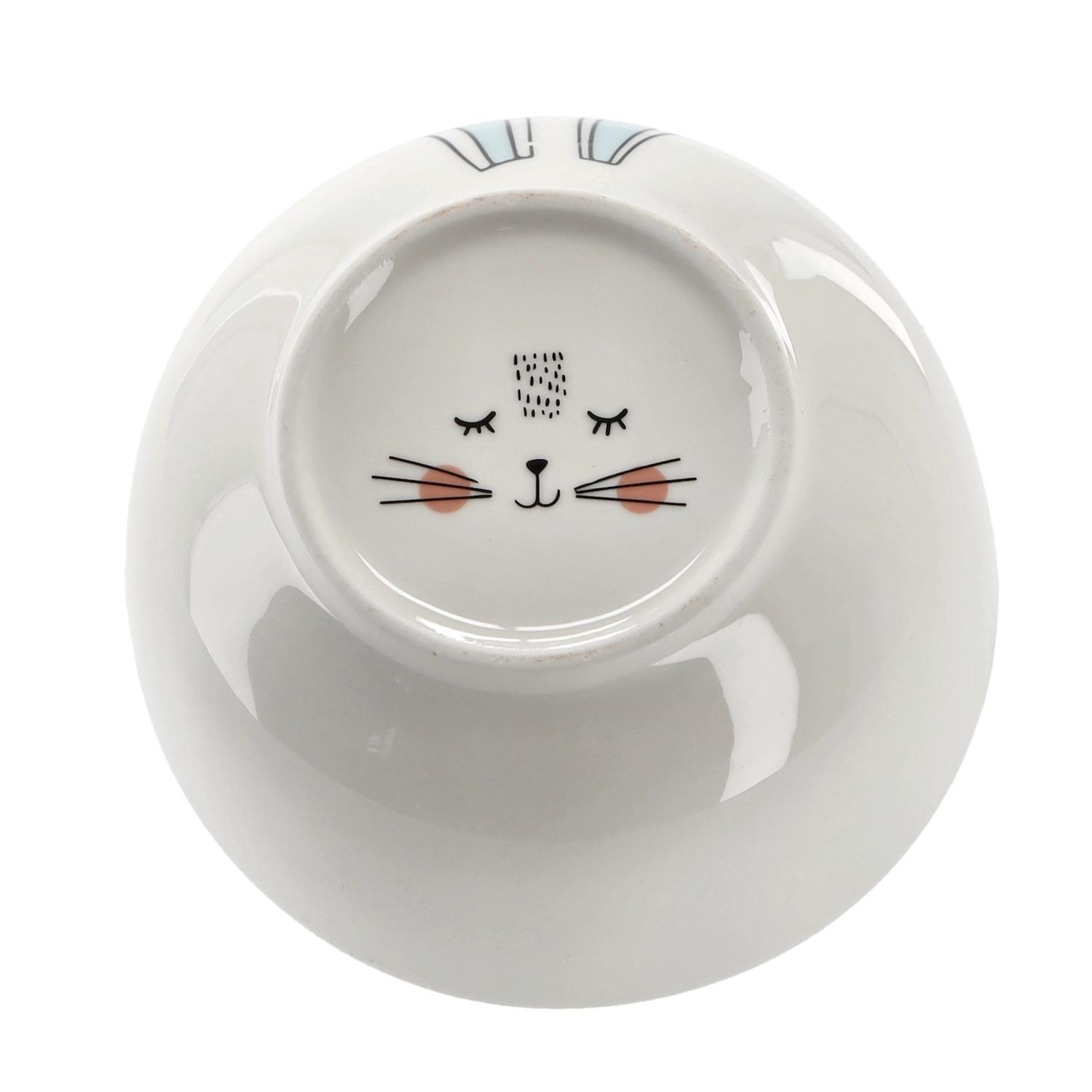 Królicze uszy na zewnętrznej stronie oraz uśmiechnięta buźka na dnie miski ucieszą dzieci i dorosłych, dodając posiłkom figlarnego charakteru.