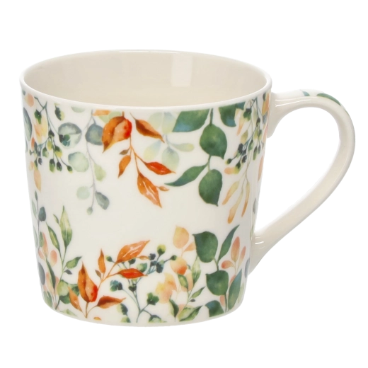 Delektuj się ulubionym napojem ze stylem. Ten porcelanowy kubek z akwarelowym nadrukiem liści łączy elegancki design z praktycznymi właściwościami. Dzięki pojemności 400 ml jest idealny na dłuższe chwile relaksu przy kawie, herbacie lub naparach ziołowych.