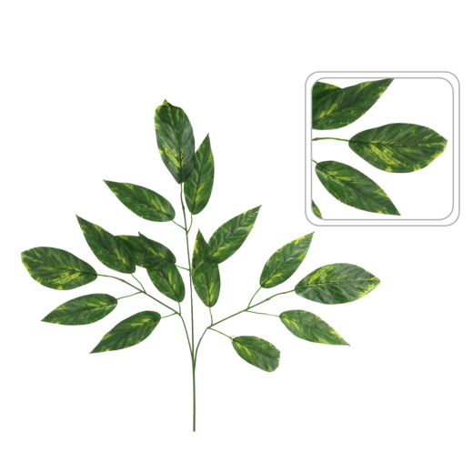 Wnieś do wnętrz i przestrzeni zewnętrznych tropikalny akcent dzięki tej realistycznej sztucznej gałązce mango o długości 69 cm i szerokości 48 cm. Dzięki naturalnemu zielonemu zabarwieniu, wysokiej jakości materiałom syntetycznym oraz odporności na czynniki zewnętrzne prezentuje się bardzo autentycznie i na długo zachowuje swój wygląd. Elastyczne wykonanie ułatwia aranżację w wazonach, wieńcach i dekoracjach bez wymagającej pielęgnacji.