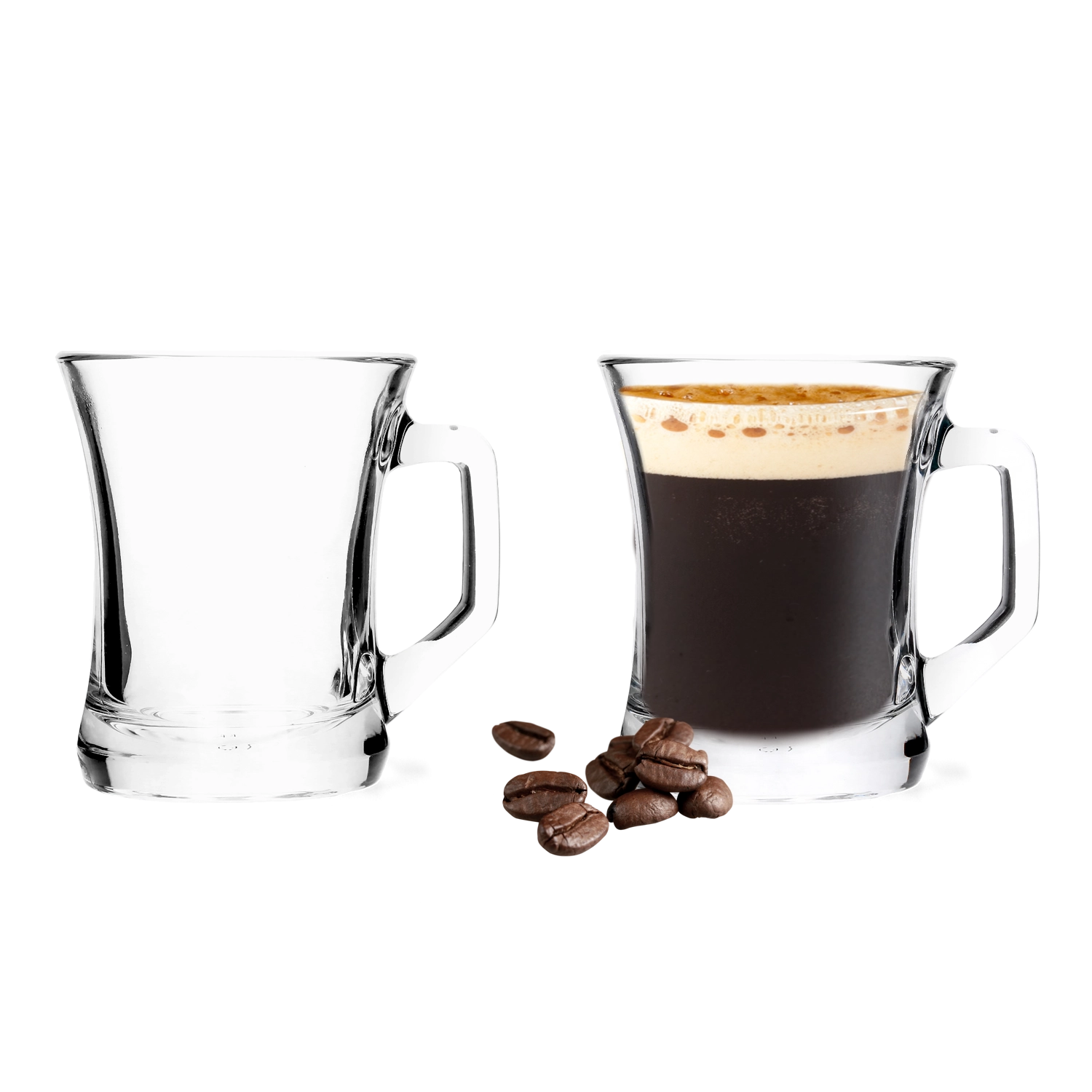 Praktyczny zestaw 6 szklanek z uchem o pojemności 200 ml do gorących i zimnych napojów. Wykonane z wysokiej jakości przeźroczystego szkła do eleganckiego serwowania kawy, herbaty, soku czy wody. Szklanki są odporne na temperaturę i nadają się do zmywarki, idealne do codziennego użytku w domu i gastronomii.