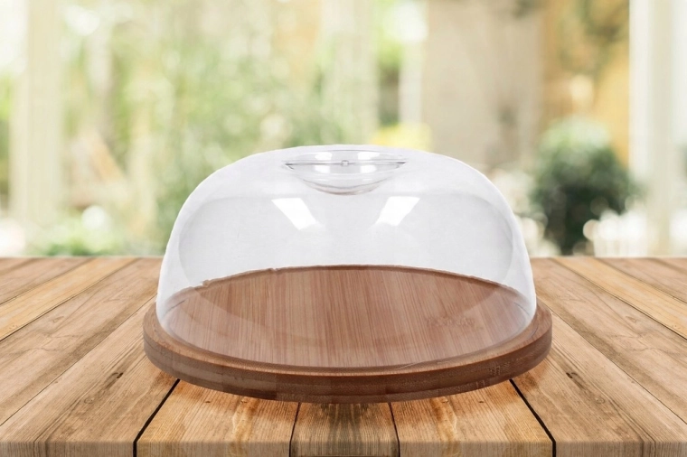 Dzięki precyzyjnemu wybraniu pokrywa ściśle przylega do podstawy, co pomaga utrzymać świeżość. Praktyczny rowek obwodowy zbiera soki podczas krojenia i utrzymuje blat w czystości. Minimalistyczny wygląd pasuje do każdej kuchni i na odświętnie nakryty stół.