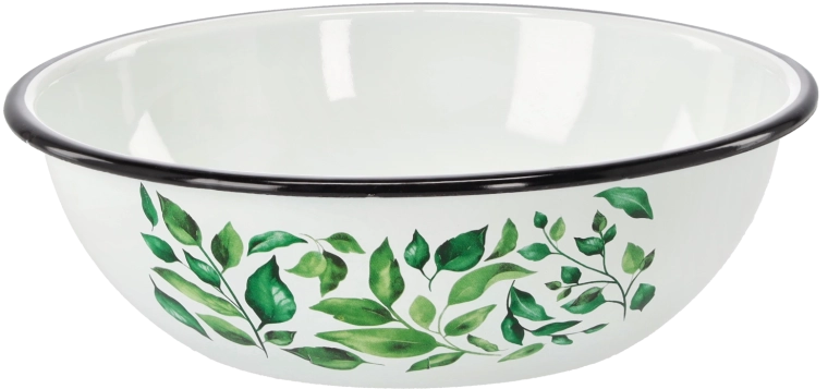 Praktyczna i elegancka emaliowana miska o pojemności 2,5 l i średnicy 24,5 cm w białym kolorze z motywem fikusa. Idealna do codziennego użytku – od mieszania ciasta po serwowanie sałatek. Trwała emaliowana powłoka jest higieniczna, łatwa w czyszczeniu i nie wpływa na smak ani zapach żywności. Dzięki odporności na wysokie i niskie temperatury oferuje szerokie zastosowanie w każdej kuchni.
