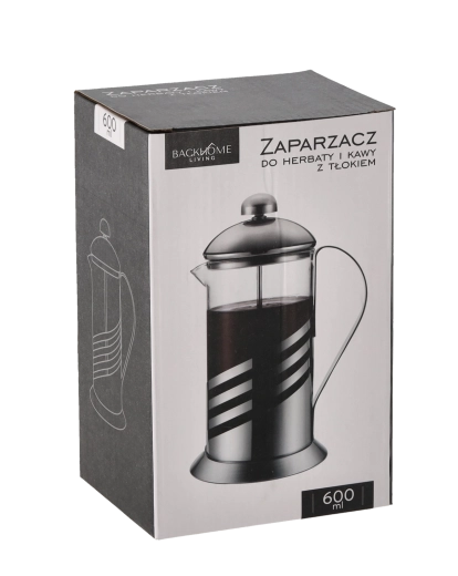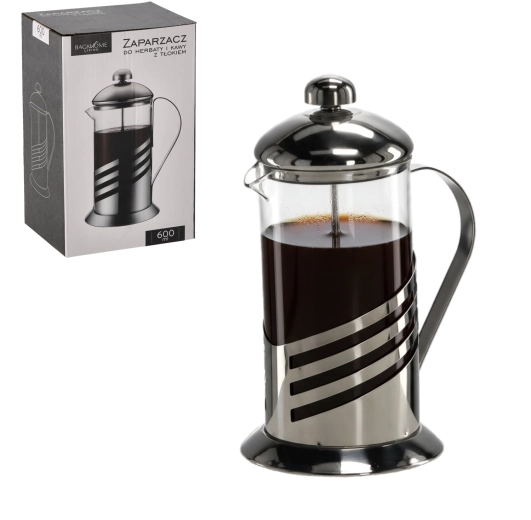 Praktyczny french press o pojemności 600 ml do przygotowywania świeżej kawy, herbaty i naparów ziołowych. Dzięki prostemu mechanizmowi tłokowemu zapewnia szybką filtrację bez fusów. Eleganckie połączenie szkła borokrzemowego i stali nierdzewnej gwarantuje odporność na wysokie temperatury oraz długą żywotność, a ergonomiczny uchwyt i drobne sitko uprzyjemniają codzienne użytkowanie. Można myć w zmywarce dla łatwej pielęgnacji.