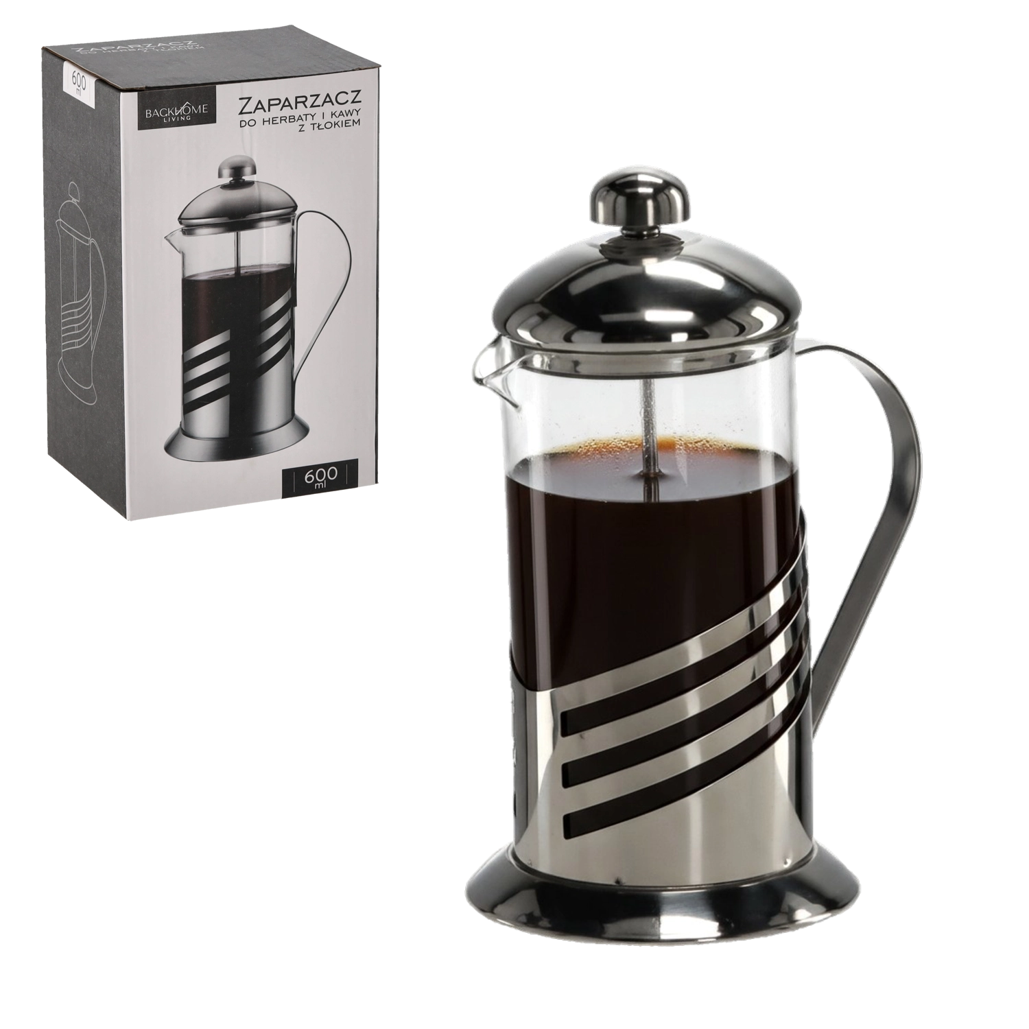 Odkryj wygodny sposób na przygotowanie w domu aromatycznej kawy lub herbaty. Ten french press z tłokiem o pojemności 600 ml łączy czysty design i funkcjonalność: szkło borokrzemowe wytrzymuje temperatury do 180 °C, a stal nierdzewna dodaje wytrzymałości i eleganckiego wyglądu. Dzięki precyzyjnemu, nierdzewnemu sitku uzyskasz klarowny napar bez niepożądanych resztek.