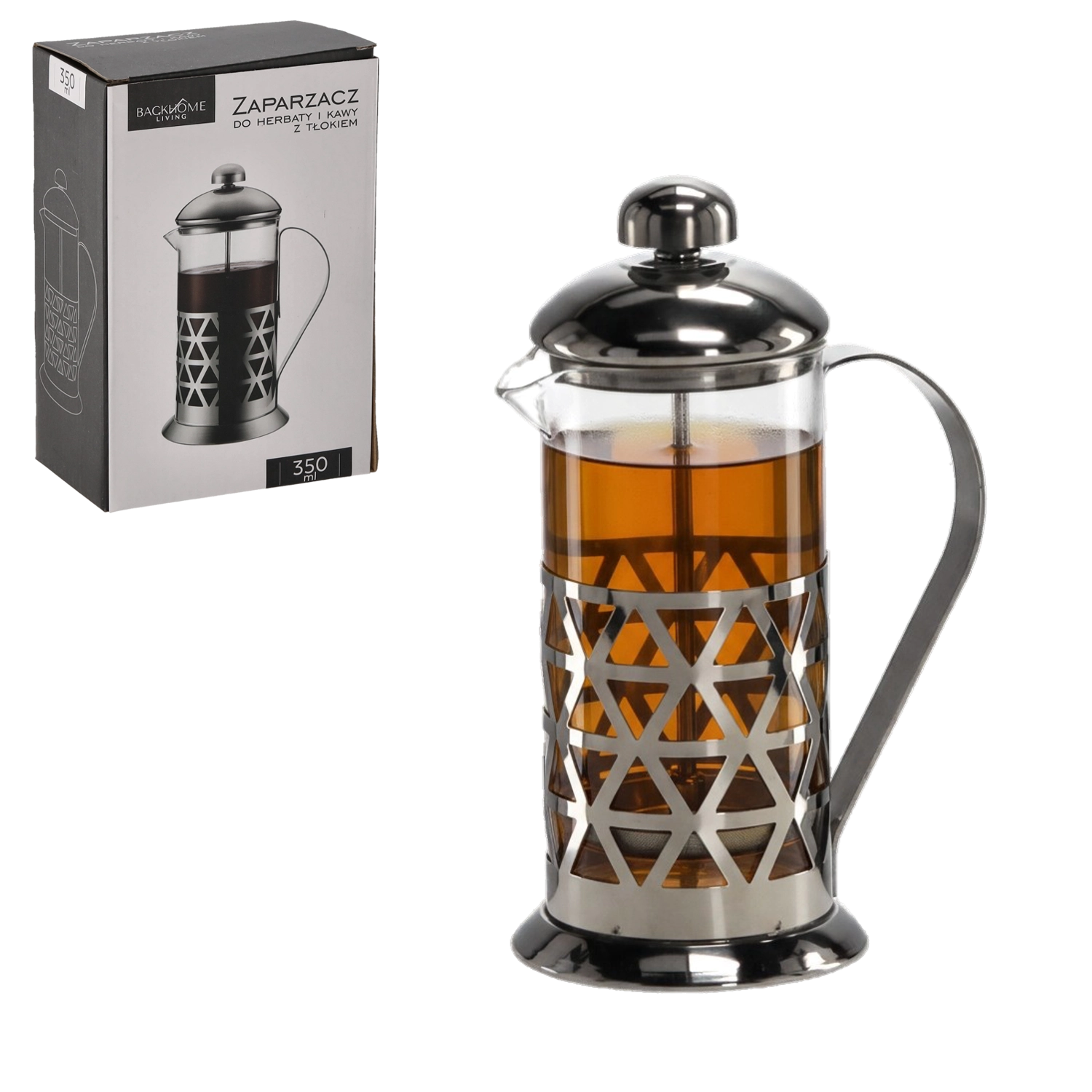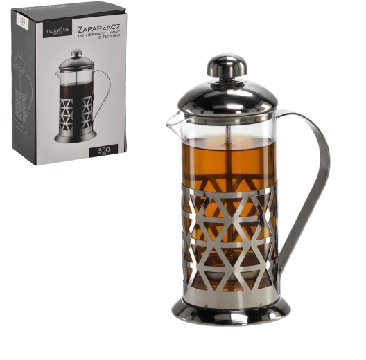 Elegancki french press o pojemności 350 ml do szybkiego przygotowania wyśmienitej kawy i herbaty. Dzięki prostemu mechanizmowi tłokowemu łatwo oddzielisz fusy, co zapewnia czysty i pełny profil smakowy. Trwałe szkło borokrzemowe oraz stal nierdzewna gwarantują długą żywotność, a plastikowa pokrywka i uchwyt zapewniają wygodne i bezpieczne użytkowanie. Doskonały na 1–2 porcje w domu i w biurze.