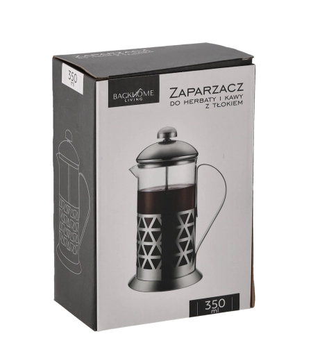 Delektuj się aromatyczną kawą, herbatą lub naparami ziołowymi z kompaktowego french pressu o pojemności 350 ml. Dzięki tłokowi z drobnym sitkiem uzyskasz klarowny napój bez drobnych cząsteczek w kilka minut. Odporne szkło borokrzemowe znosi szoki termiczne, stal nierdzewna dodaje solidności, a elementy z tworzywa zwiększają komfort i bezpieczeństwo podczas serwowania.