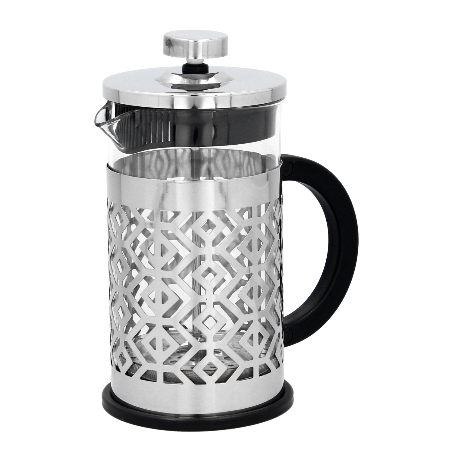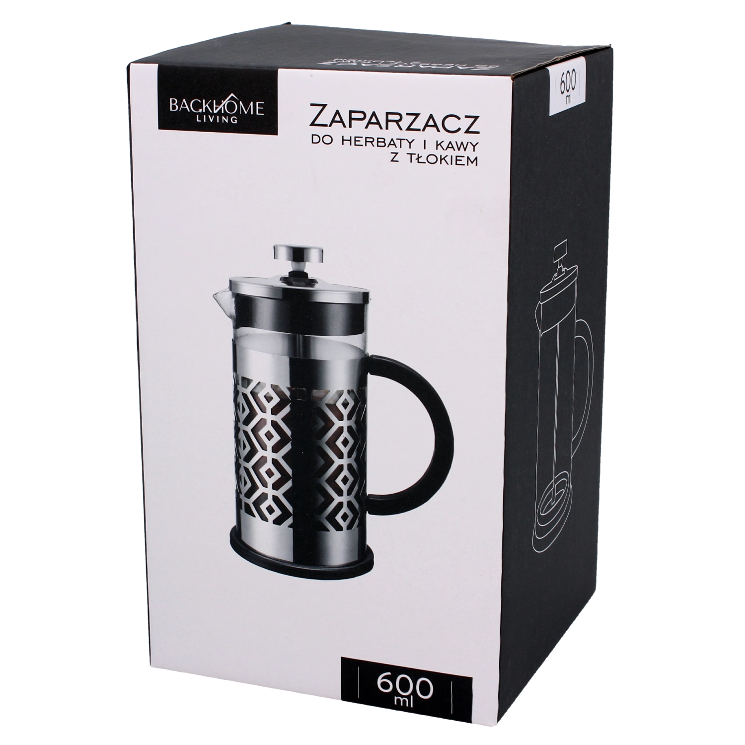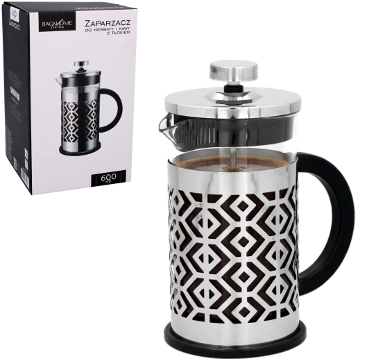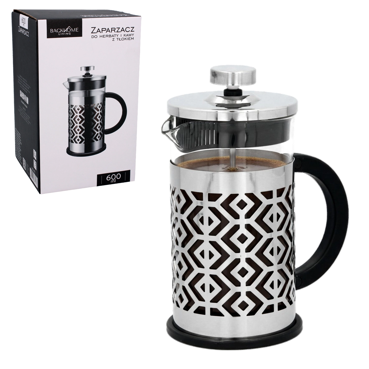 Elegancki french press do codziennego użytku w domu, kawiarni i biurze. Połączenie wytrzymałego szkła borokrzemowego oraz stali nierdzewnej gwarantuje długą żywotność i czysty profil smakowy napoju. Drobne sitko skutecznie oddziela liście herbaty i fusy kawowe, dzięki czemu delektujesz się idealnie klarowną filiżanką.