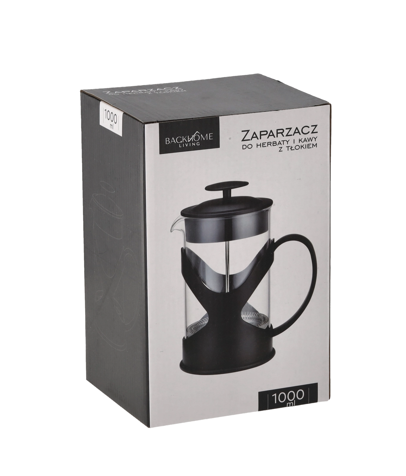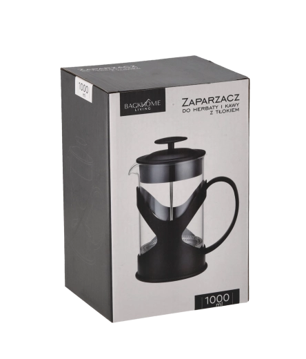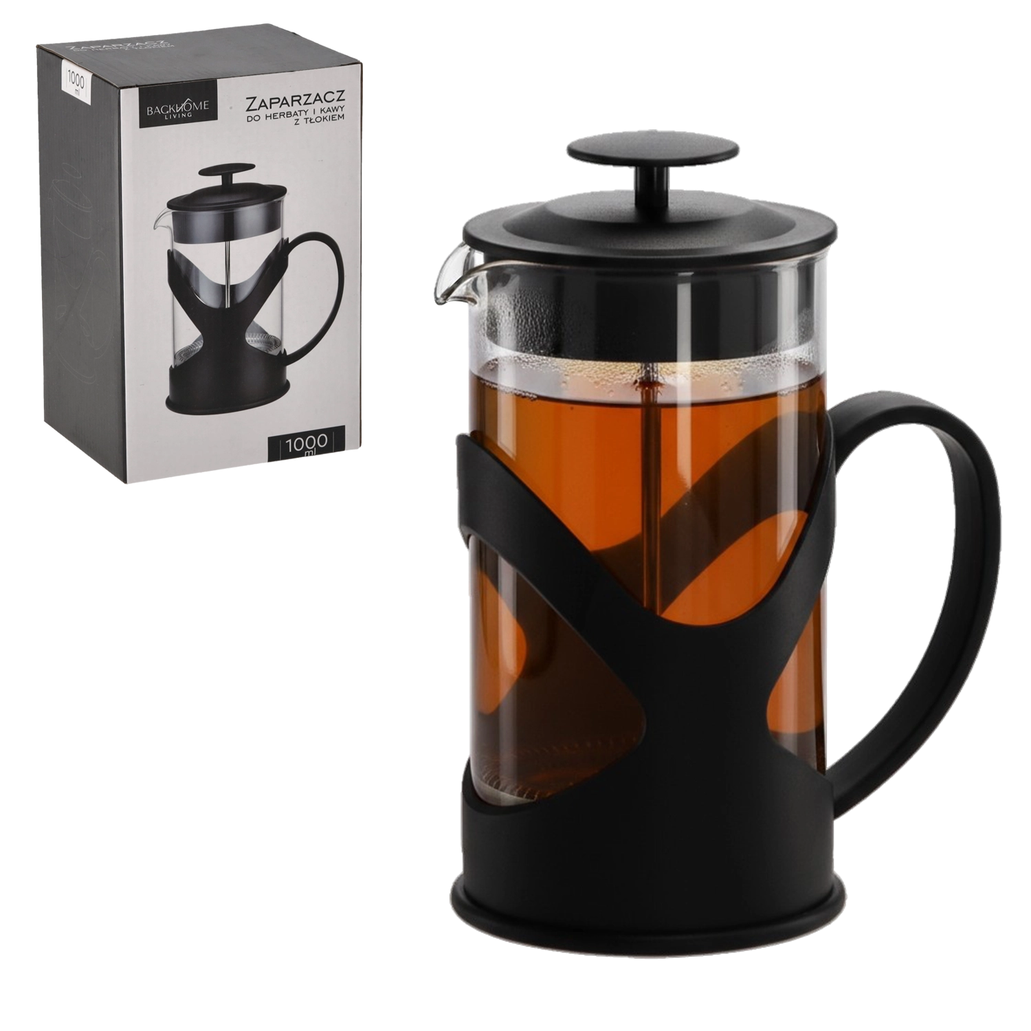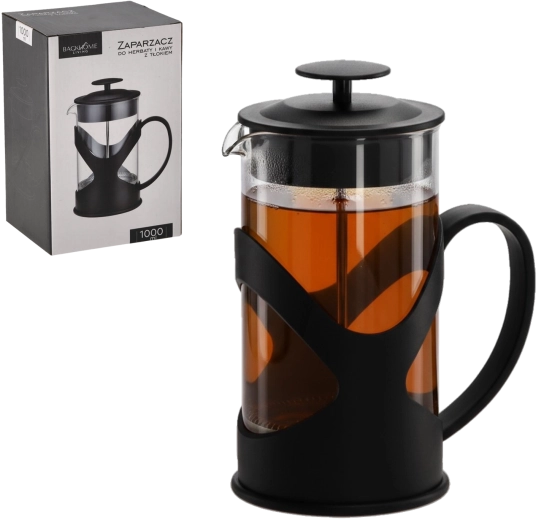 Stylowy french press o pojemności 1000 ml to praktyczny pomocnik do przygotowania wyśmienitej kawy, herbaty i naparów ziołowych. Dzięki mechanizmowi tłokowemu i drobnemu stalowemu sitku przygotujesz napój szybko, czysto i bez fusów. Borokrzemowe szkło jest odporne na wysokie temperatury, a ergonomiczny uchwyt i stabilna podstawa zapewniają bezpieczne i wygodne użytkowanie. Idealny na co dzień i dla gości.