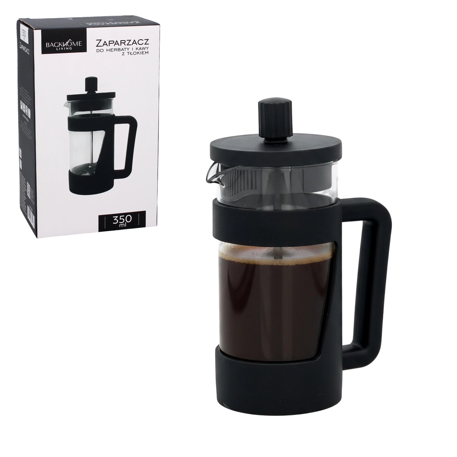 Praktyczny dźwigniowy french press o pojemności 350 ml do szybkiego przygotowania aromatycznej kawy i herbaty bez fusów. Trwałe szkło borokrzemowe oraz stalowy tłok z sitkiem zapewniają czysty napar i długą żywotność. Kompaktowy rozmiar jest idealny na 1–2 porcje w domu i w biurze.