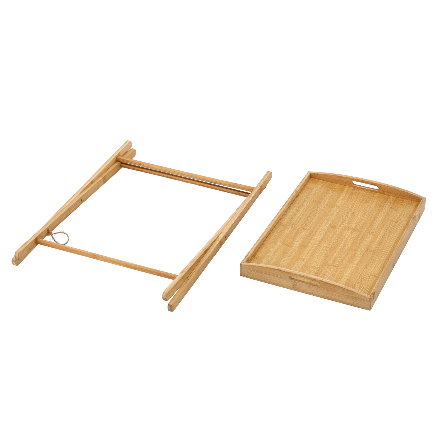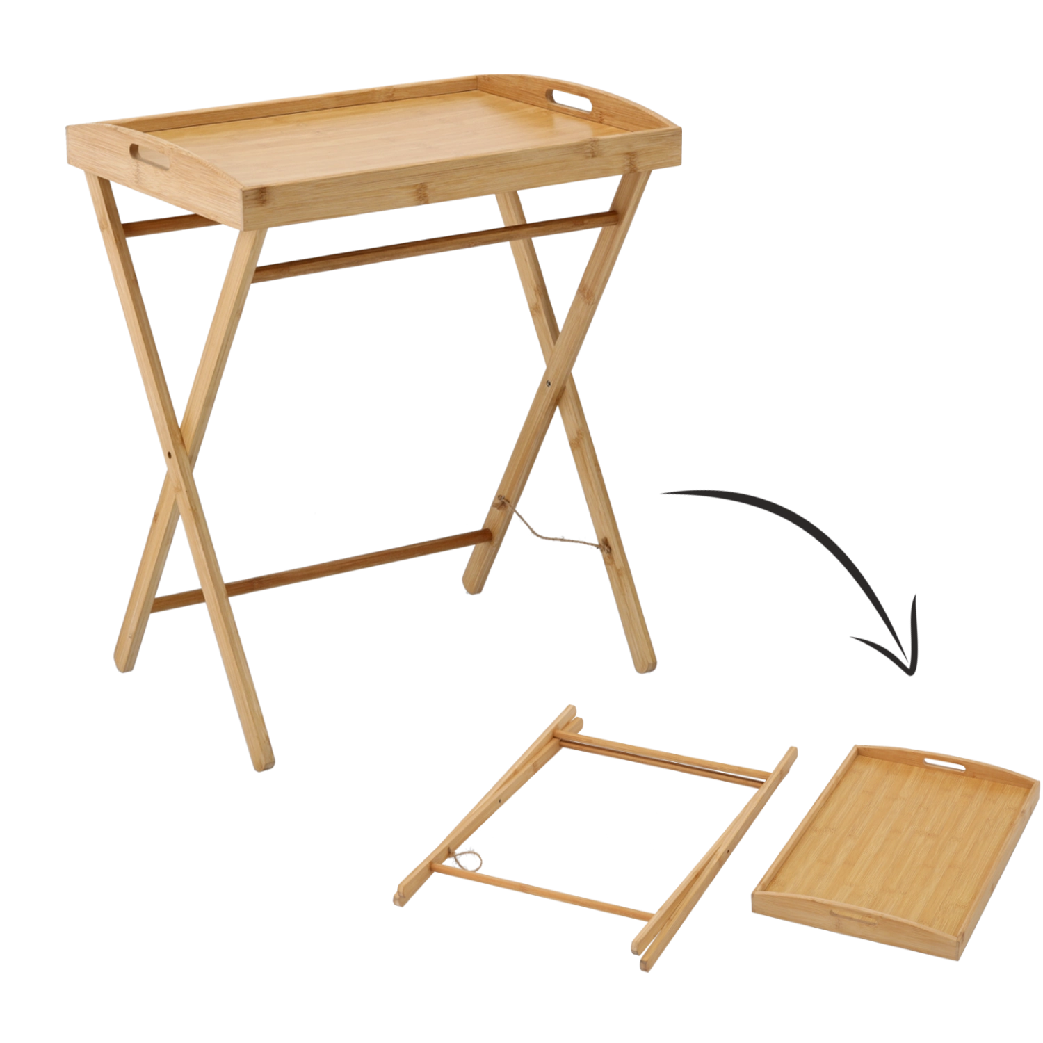 Delektuj się wygodą w domu z uniwersalnym bambusowym stolikiem, który łączy funkcjonalność, estetykę i wytrzymałość. Wyjmowana taca z podwyższonym rantem i bocznymi uchwytami ułatwia serwowanie i zapobiega zsuwaniu się przedmiotów. Solidne, krzyżowe nogi ze składanym mechanizmem zapewniają szybkie złożenie i łatwe przechowywanie.