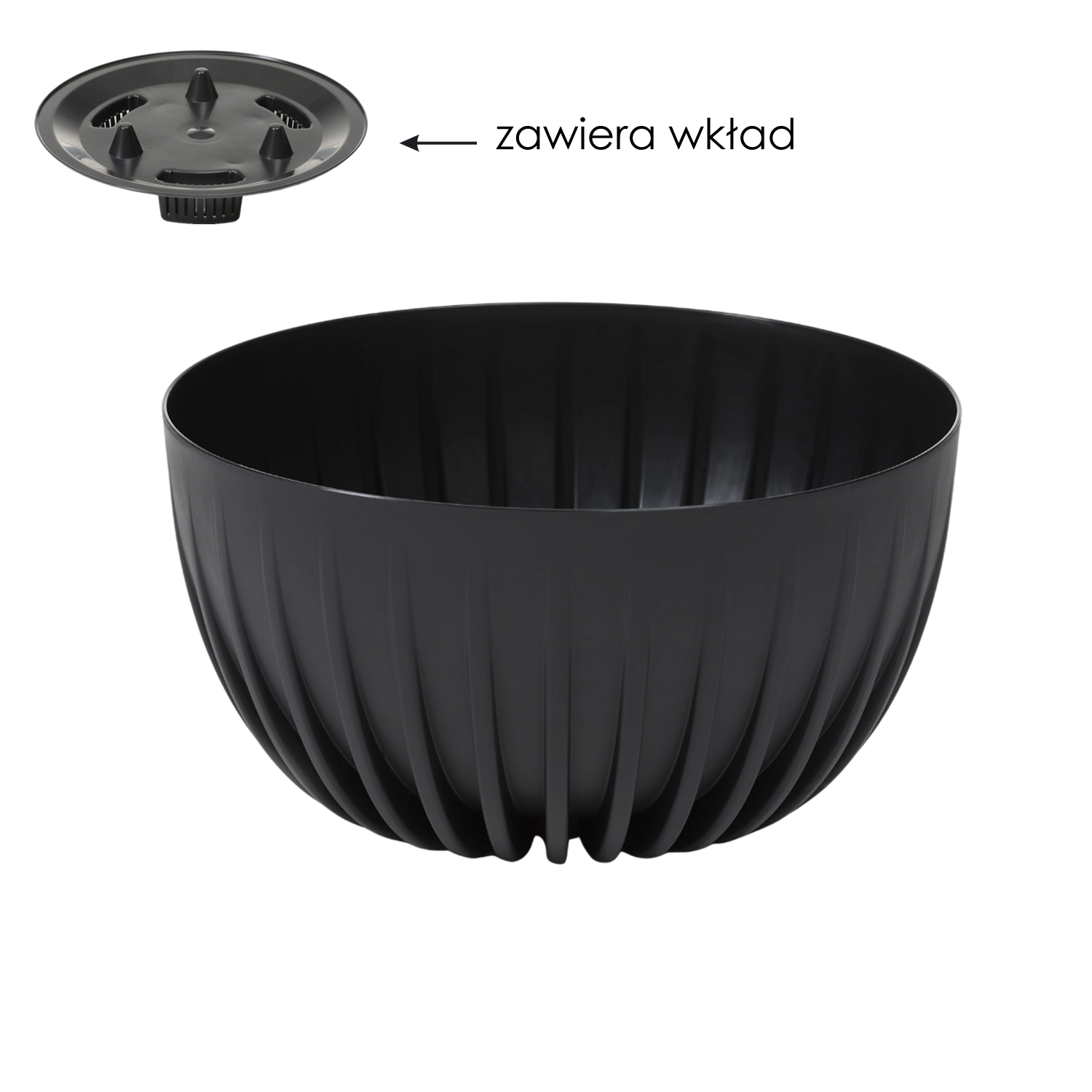 Dzięki wytrzymałemu materiałowi radzi sobie z mrozem, wilgocią i obciążeniami mechanicznymi. W zestawie znajduje się wewnętrzna wkładka, która zapewnia efektywny odpływ nadmiaru wody i chroni korzenie przed gniciem – bez potrzeby stosowania warstw drenażowych. Szeroki otwór ułatwia sadzenie i pielęgnację.