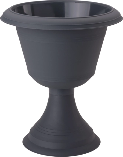 Elegancka i wytrzymała donica z wysokiej jakości plastiku w nowoczesnym kolorze antracytowym składa się z dwóch części – kubka i odpinanej nogi. Dzięki prostej, gładkiej formie świetnie pasuje do wnętrz i na zewnątrz: do domu, na tarasy, balkony, do ogrodów i na cmentarze. Jest lekka, łatwa w czyszczeniu i umożliwia zastosowanie drenażu dla zdrowszego wzrostu roślin.
