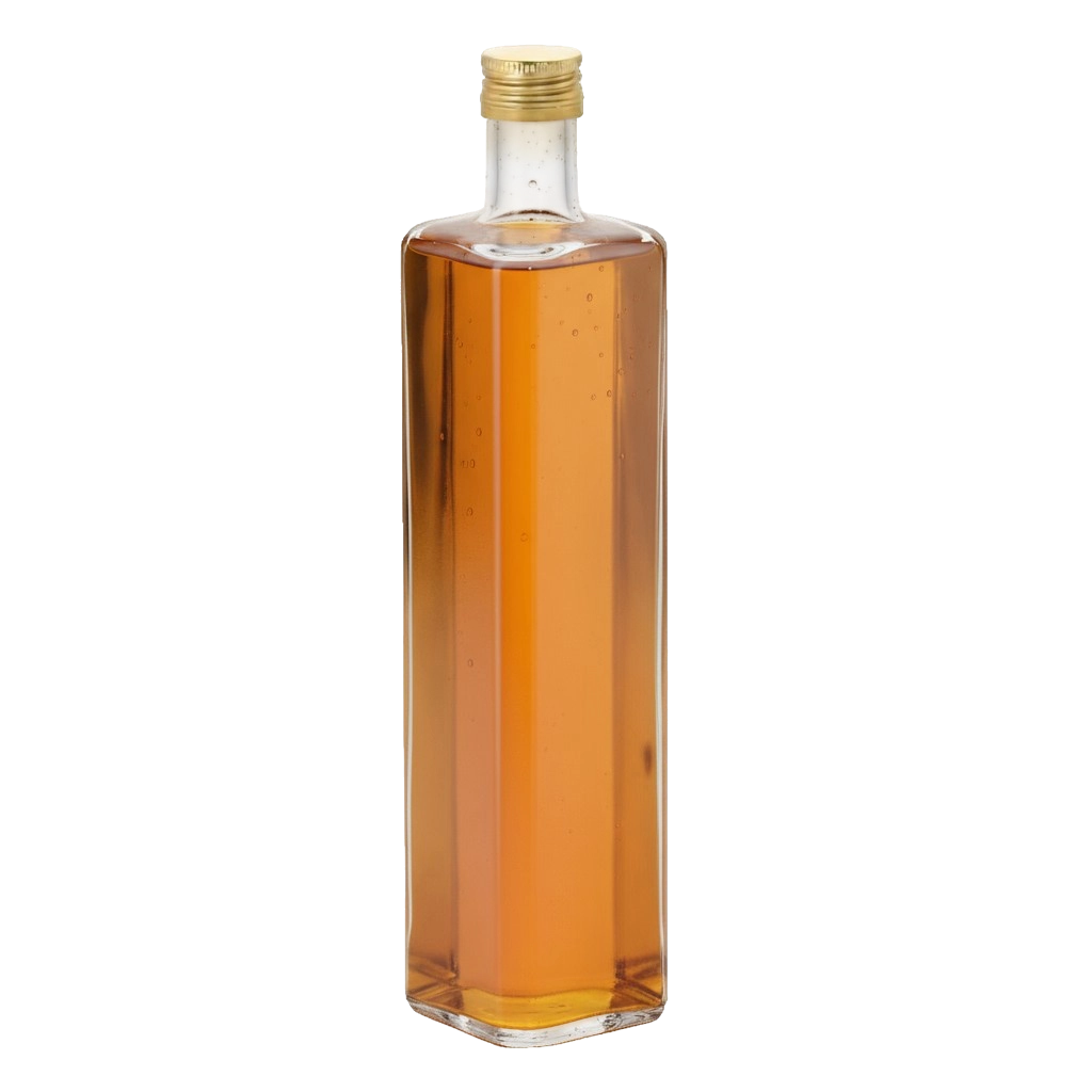 Elegancka szklana butelka o pojemności 750 ml jest idealna do domowych soków, syropów, likierów i olejów. Dzięki wysokiej jakości przezroczystemu szkłu umożliwia estetyczną prezentację zawartości, a metalowa złota nakrętka zapewnia doskonale szczelne zamknięcie bez wycieków. Nowoczesny, smukły design pasuje do kuchni i na stół, a wielokrotne użycie stanowi ekologiczną alternatywę dla plastiku.