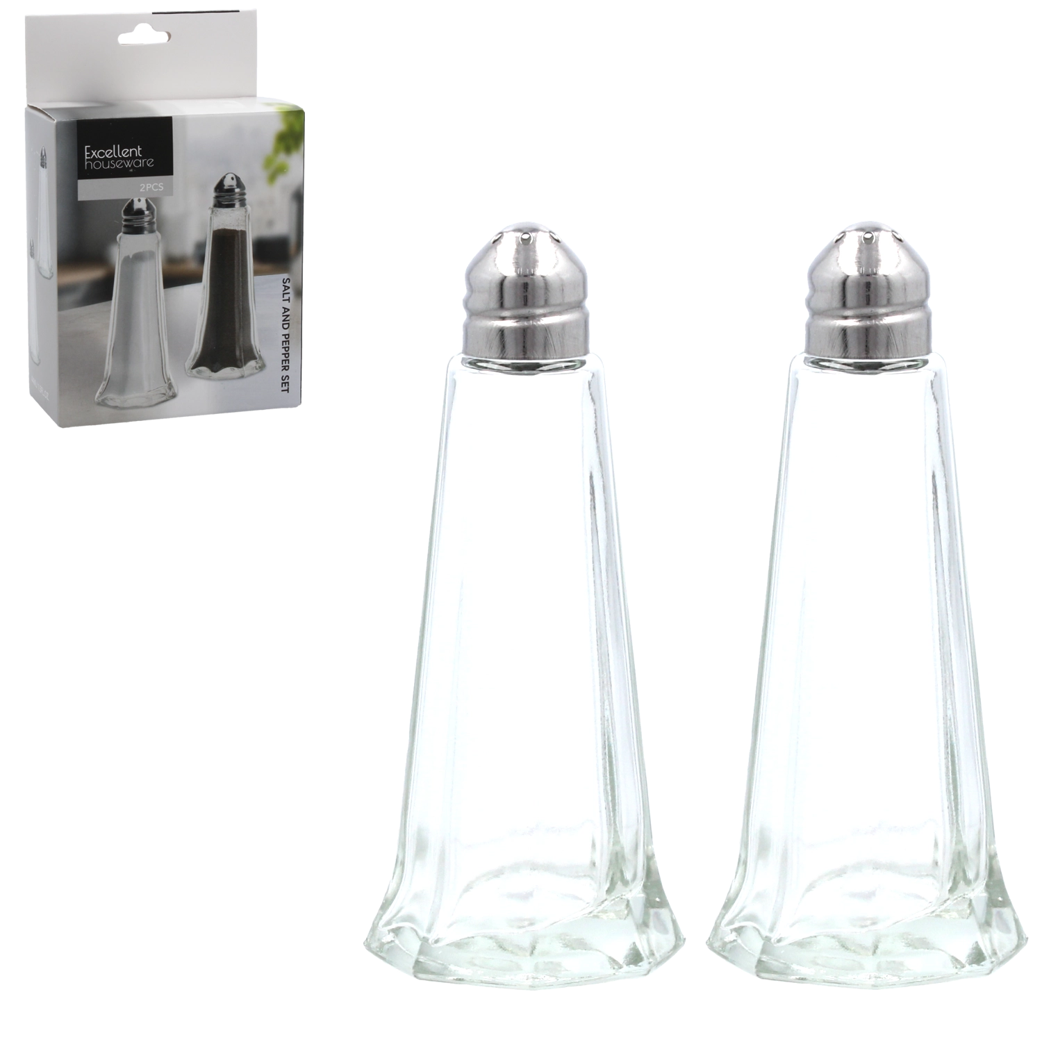Elegancki zestaw szklanych solniczek i pieprzniczek jest idealny do codziennego użytkowania w domu i w gastronomii. Każdy pojemnik z wysokiej jakości grubego szkła jest wytrzymały, łatwy do napełniania, a dzięki przezroczystemu korpusowi zawsze widać poziom przypraw. Metalowa pokrywka z sześcioma otworami zapewnia równomierne dozowanie, a kompaktowe wymiary gwarantują oszczędność miejsca na stole i w organizerach.