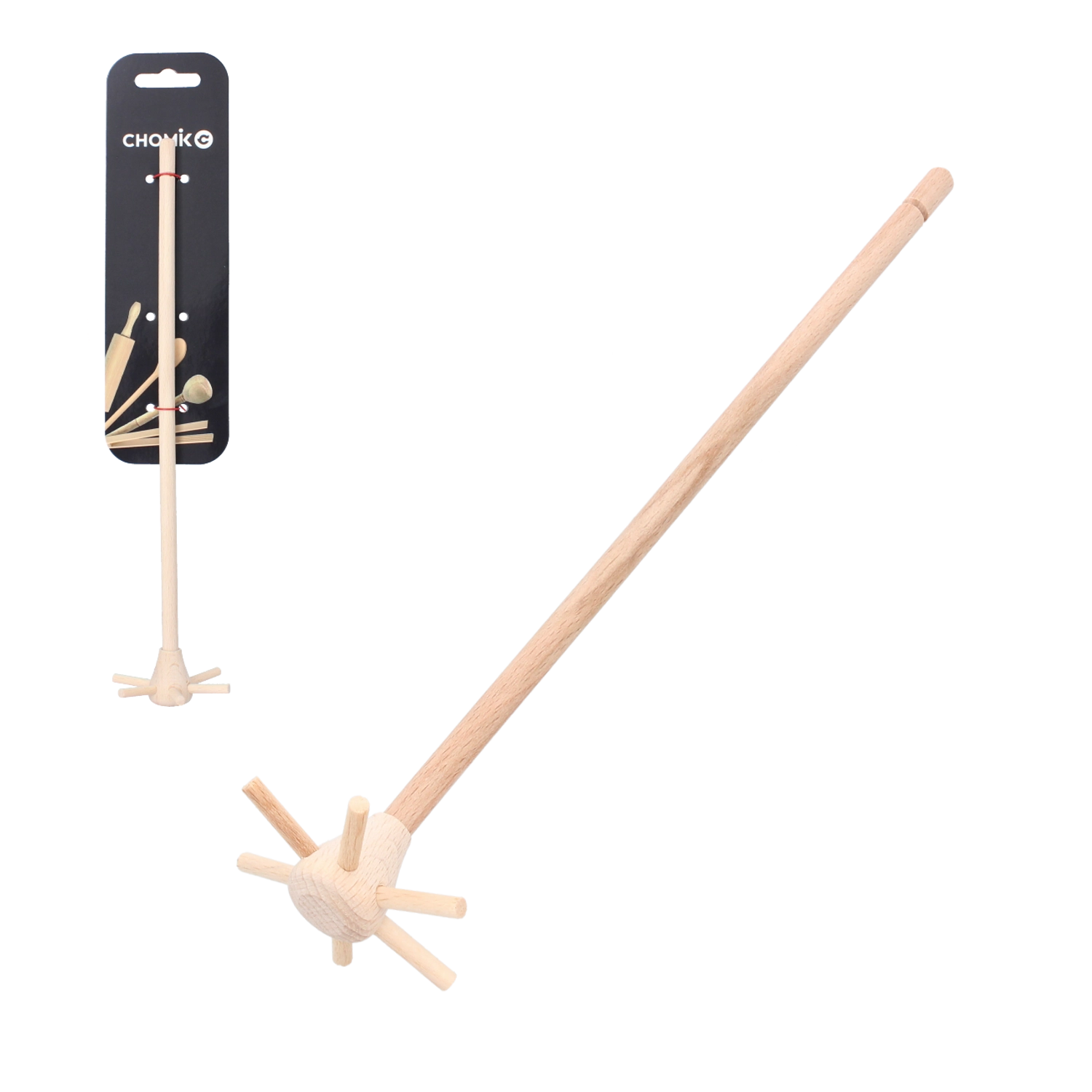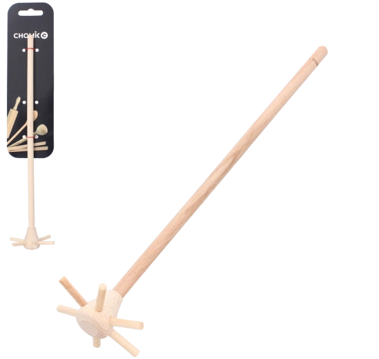 Uniwersalna drewniana trzepaczka o tradycyjnym kształcie bez problemu wymiesza sosy, kremy i zupy. Dzięki długości 27 cm wygodnie sięga dna garnka i jest delikatna dla powierzchni – nie porysuje powłok nieprzywierających ani emaliowanych naczyń.