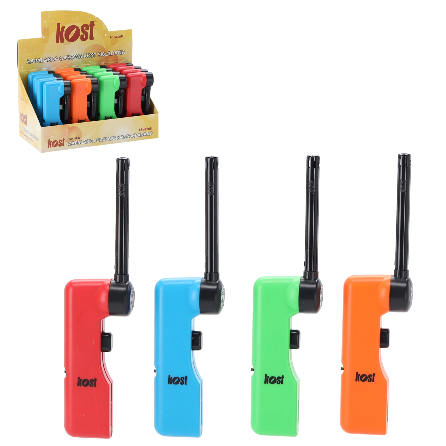 Uniwersalny składany zapalnik z obrotową głowicą do wygodnego zapalania świec, kominków i grilli. Oferuje regulowaną długość 11–19 cm, zapalanie piezo bez iskrzenia, napełniany zbiornik oraz regulację płomienia dla bezpiecznego i precyzyjnego użycia.