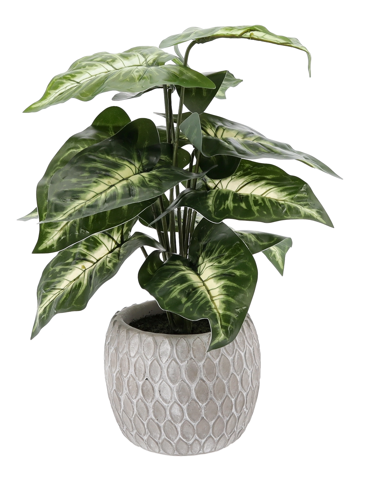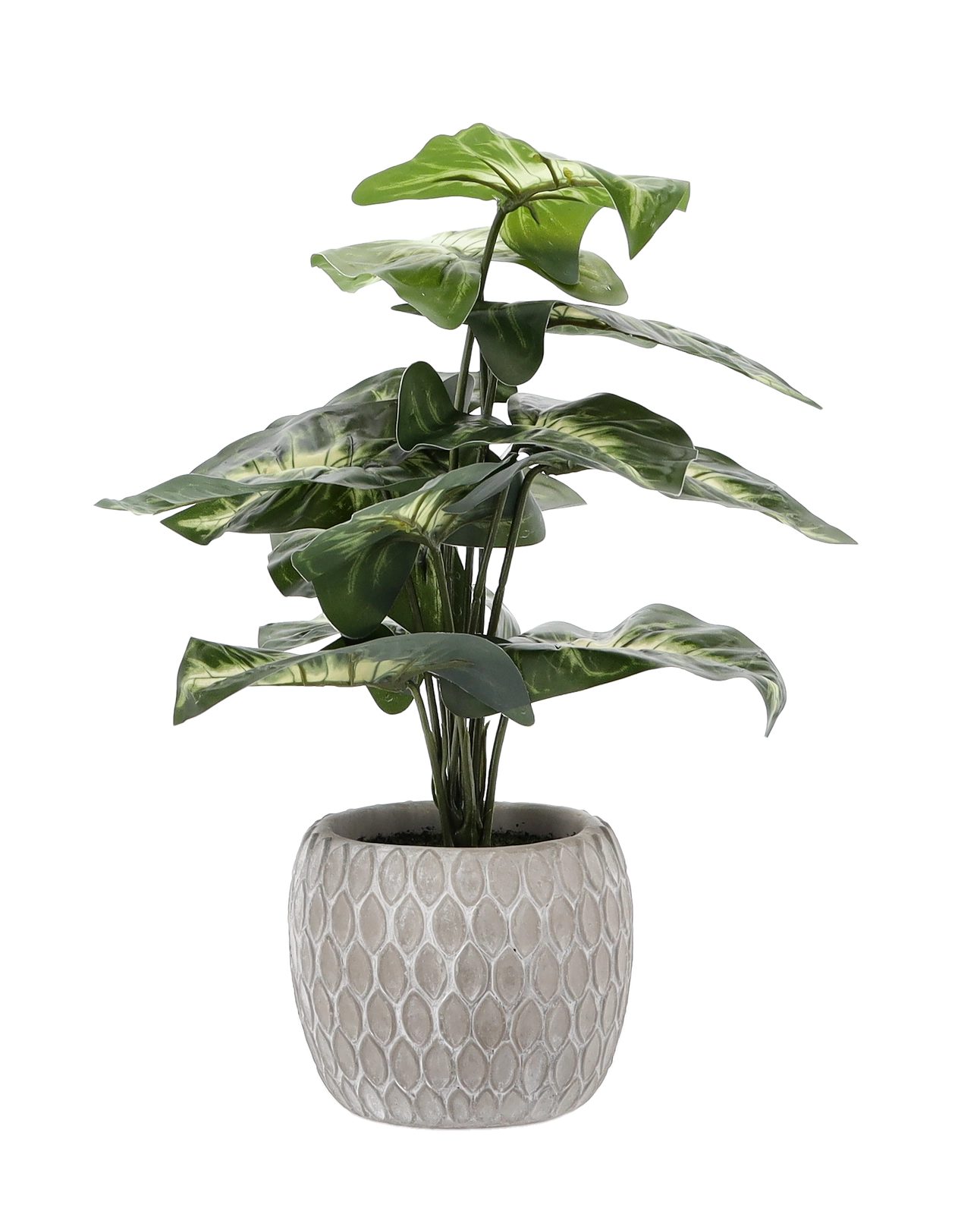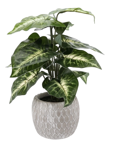 Ta elegancka sztuczna roślina wprowadza naturalny akcent do każdej przestrzeni bez konieczności podlewania i pielęgnacji. Realistycznie ukształtowane i wybarwione liście na kilku łodygach wyglądają świeżo przez cały rok, a subtelnie teksturowana, szara donica stylowo dopełnia zarówno nowoczesne, jak i klasyczne wnętrza.