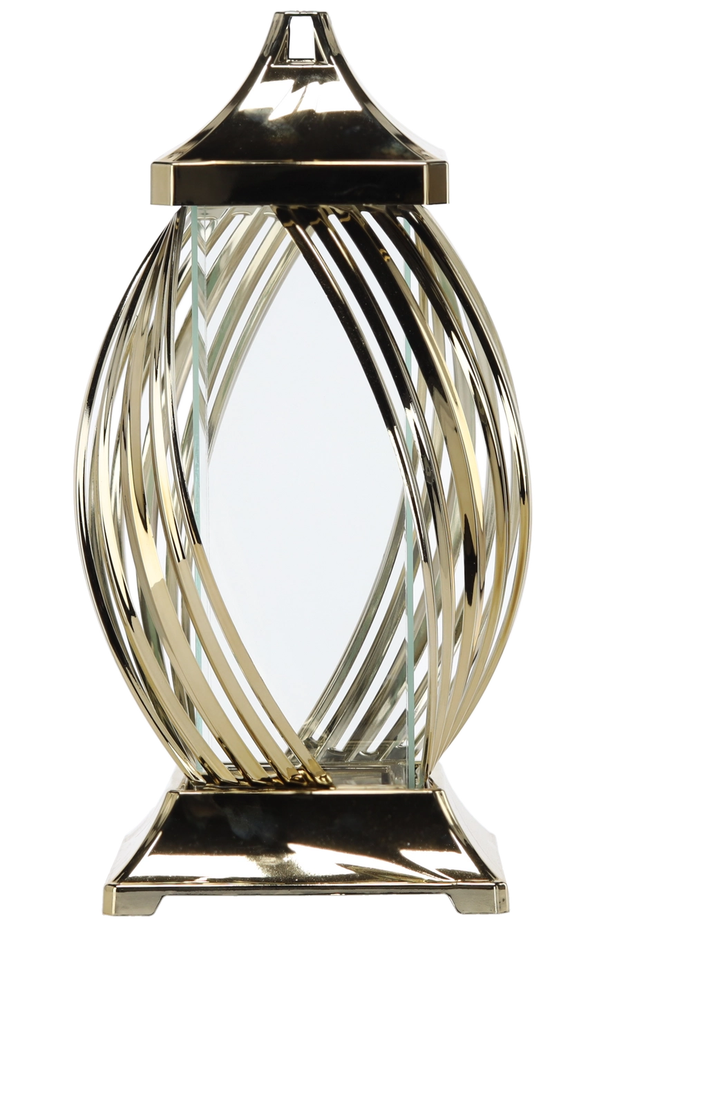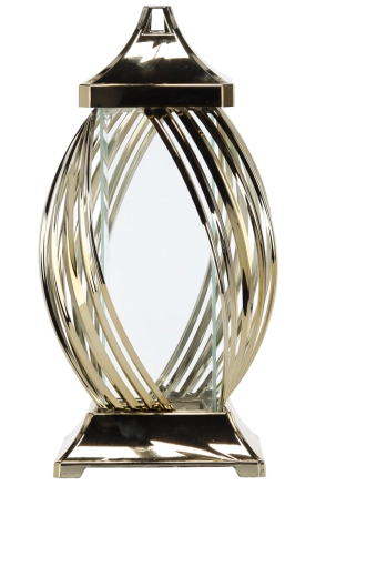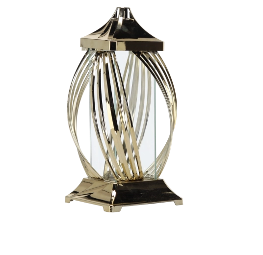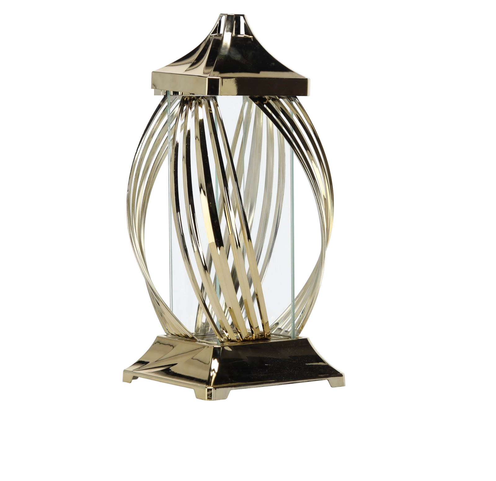 Ten dekoracyjny lampion z metalu zachwyca nowoczesnym motywem wstążki i błyszczącą, metaliczną powierzchnią. Przezroczyste ścianki przepuszczają światło świecy lub oświetlenia LED, tworząc przytulne i eleganckie oświetlenie. Solidna konstrukcja z kwadratową podstawą zapewnia stabilność, a górny uchwyt umożliwia łatwe przenoszenie lub zawieszenie.