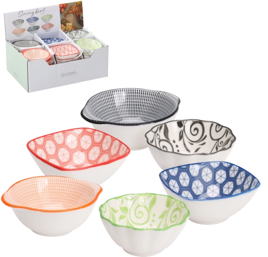 Dzięki wysokiej jakości porcelanowej glazurze miseczka jest odporna na zarysowania i łatwa w utrzymaniu. Sprawdzi się do przystawek, oliwek, orzechów, a także do dipów i przypraw.