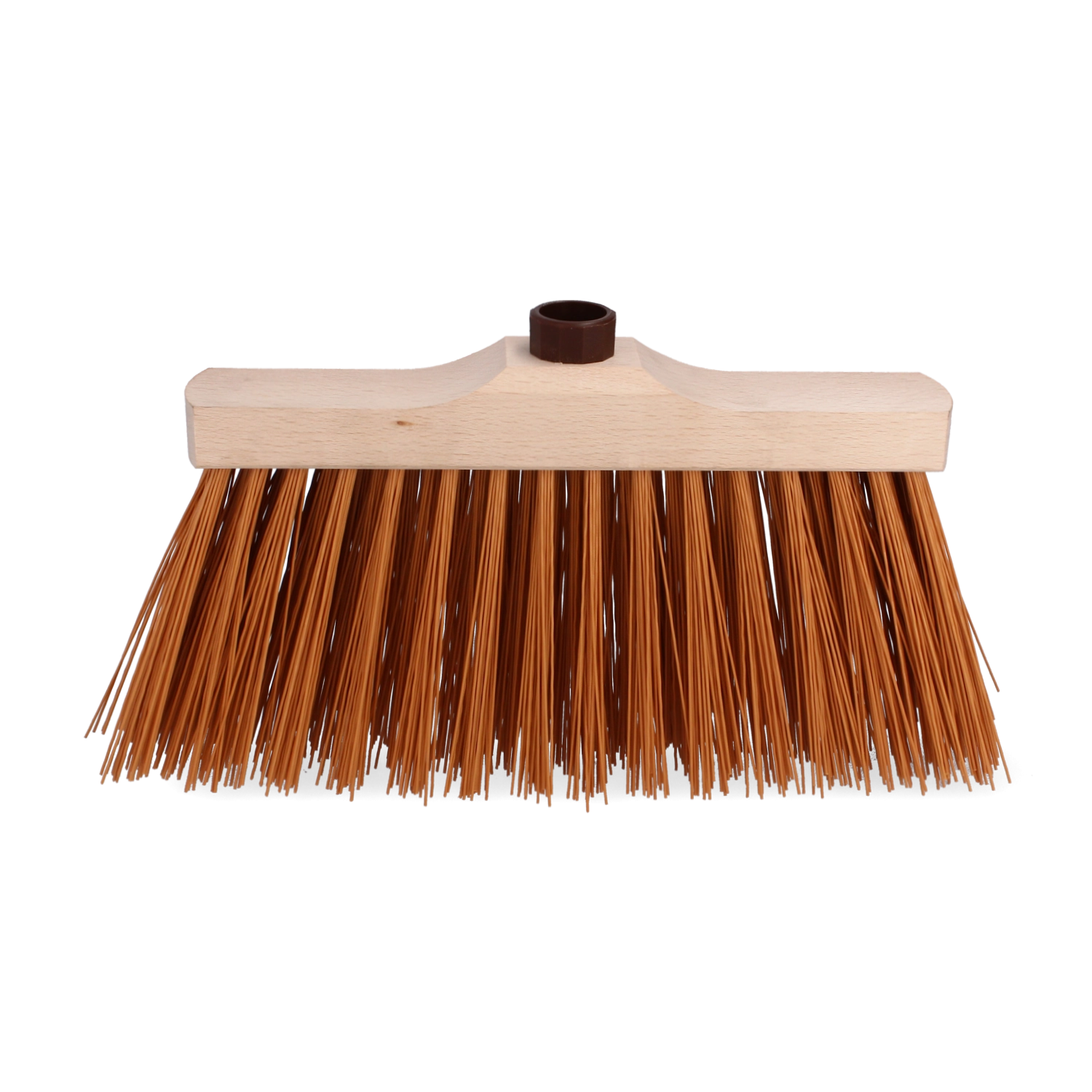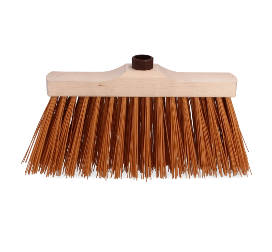 Uniwersalna gospodarcza zmiotka 25 cm z długim i wytrzymałym nylonowym włosiem do efektywnego sprzątania chodników, tarasów, garaży i warsztatów. Rozszczepione końcówki włosia poprawiają zbieranie drobnych zanieczyszczeń i kurzu, a wytrzymałe drewniane korpus zapewnia długą żywotność także przy użyciu na zewnątrz. Kompatybilna ze standardowym trzonkiem ~1,8 cm dla łatwej wymiany.