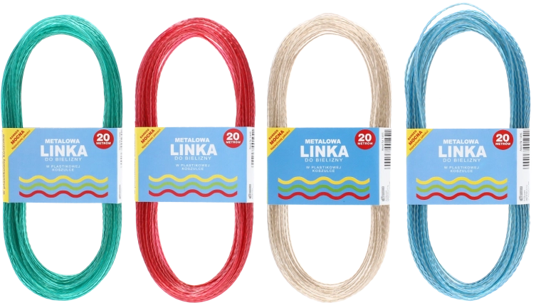 Dzięki gładkiej powierzchni linka łatwo się czyści i jest odporna na promieniowanie UV, wilgoć oraz zmiany pogody. Niska rozciągliwość zapobiega obwisaniu i pomaga utrzymać pranie bezpiecznie zawieszone.