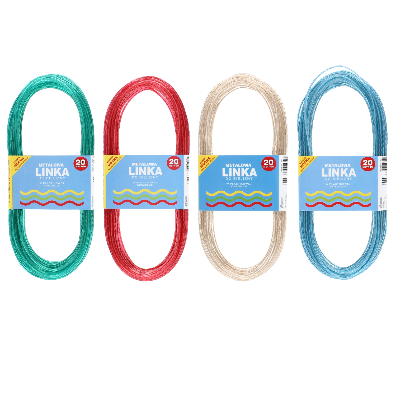 Trwała linka do prania o długości 20 m do użytku w domu i na zewnątrz. Dzięki stalowemu rdzeniowi i powłoce PVC oferuje wysoką wytrzymałość, odporność na warunki pogodowe oraz minimalne rozciąganie dla bezpiecznego suszenia także cięższego prania.