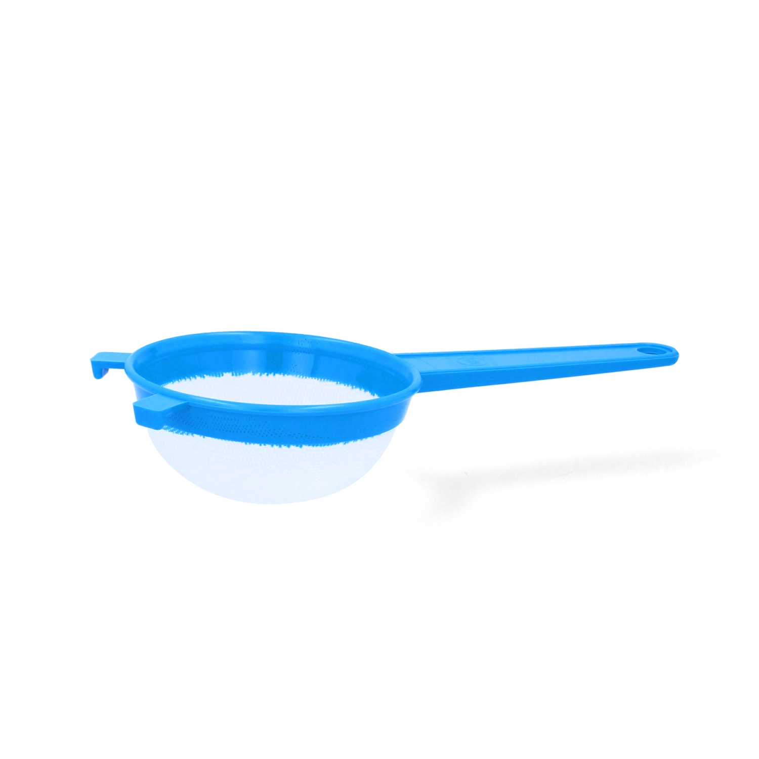 Lekkie i wytrzymałe plastikowe sitko z kulistą miseczką o średnicy 10,5 cm to praktyczny pomocnik do każdej kuchni. Dzięki drobnej siatce ok. 0,9 mm idealnie nadaje się do precyzyjnego przesiewania mąki czy cukru oraz odcedzania płynów z produktów konserwowych. Ma ergonomiczny uchwyt dla wygodnego trzymania i otwór do zawieszenia. Dostarczane w mixie kolorów w zależności od aktualnej dostępności.