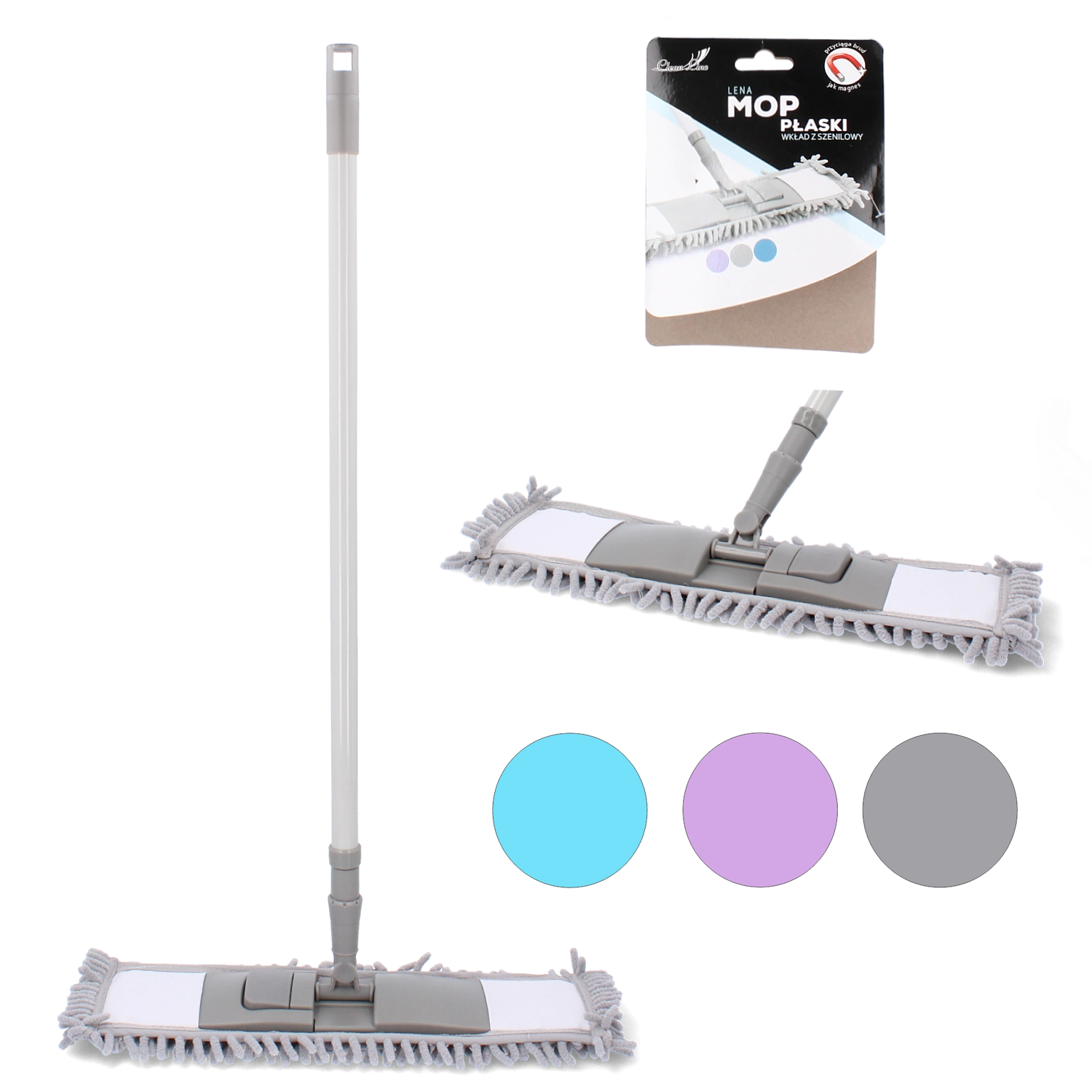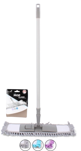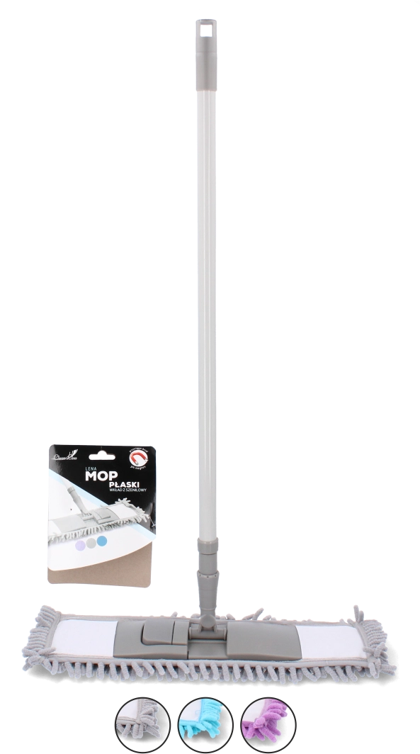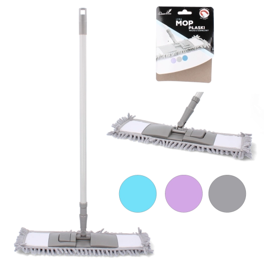 Ułatw sobie codzienne sprzątanie mopem, który łączy delikatność dla powierzchni z wysoką skutecznością. Główka z mikrofibry i nylonu z frędzlami chenille przyciąga kurz jak magnes, doskonale wchłania wodę, a jednocześnie jest łagodna dla wrażliwych podłóg, takich jak drewno, laminat czy winyl. Dzięki płaskiej konstrukcji bez wysiłku wyczyścisz także trudniej dostępne miejsca.