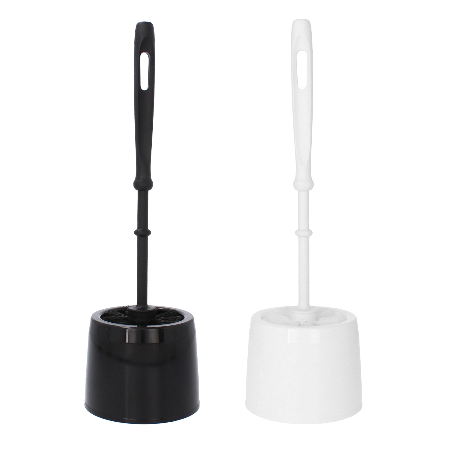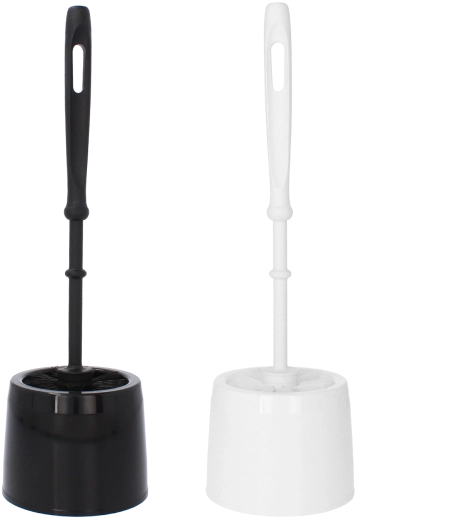 - Szczotka toaletowa i biały plastikowy stojak