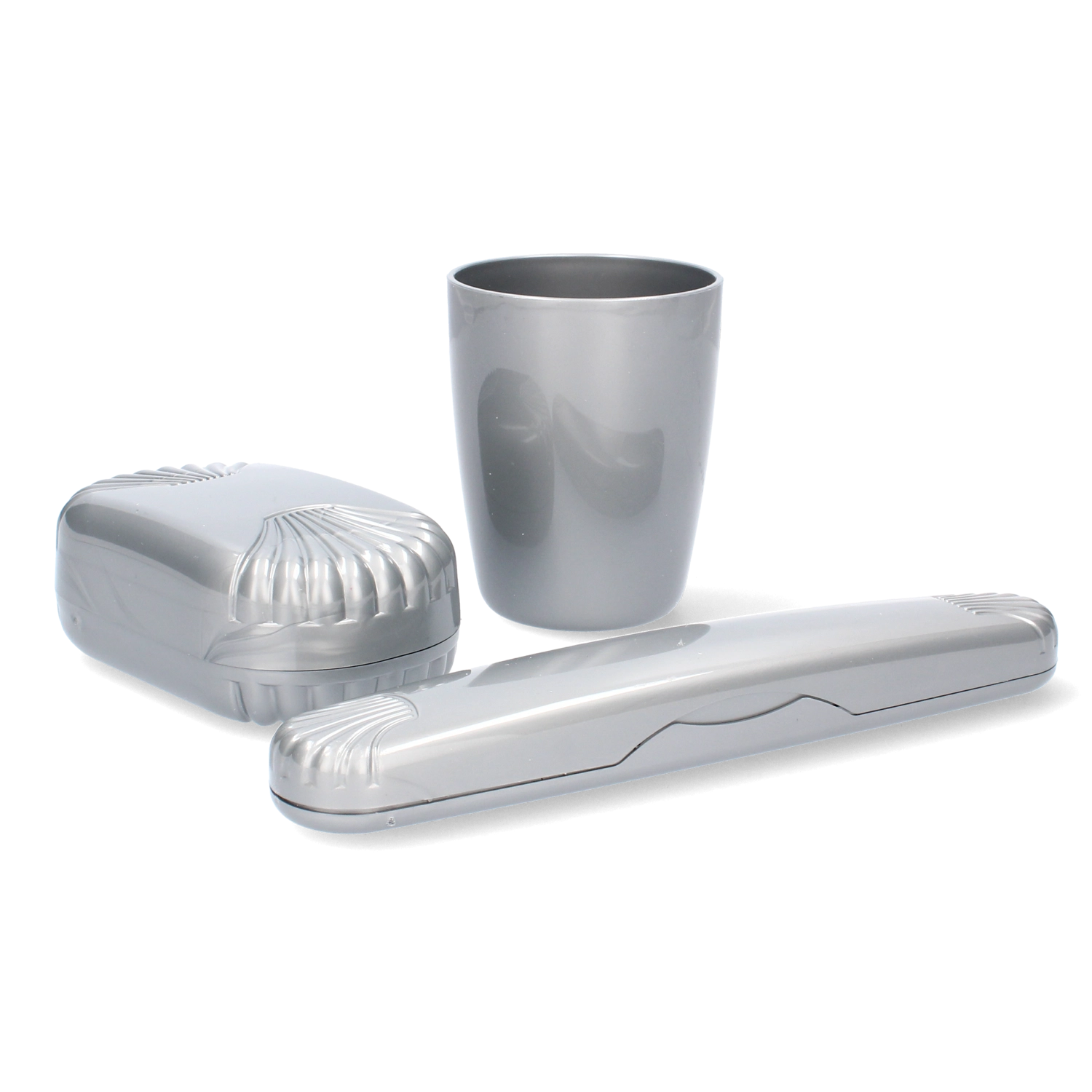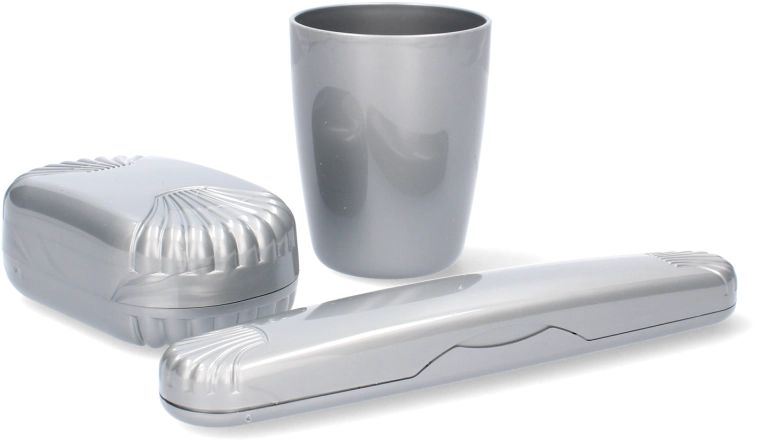 Praktyczny podróżny zestaw akcesoriów higienicznych dla każdego podróżnika. Zawiera kubek, mydelniczkę oraz etui na szczoteczkę do zębów w kompaktowym opakowaniu. Wykonany z trwałego i łatwego w czyszczeniu plastiku (PS), idealny na kemping, wakacje i wyjazdy służbowe. Dostępna jest wariant kolorystyczny mix dla łatwego wyboru.