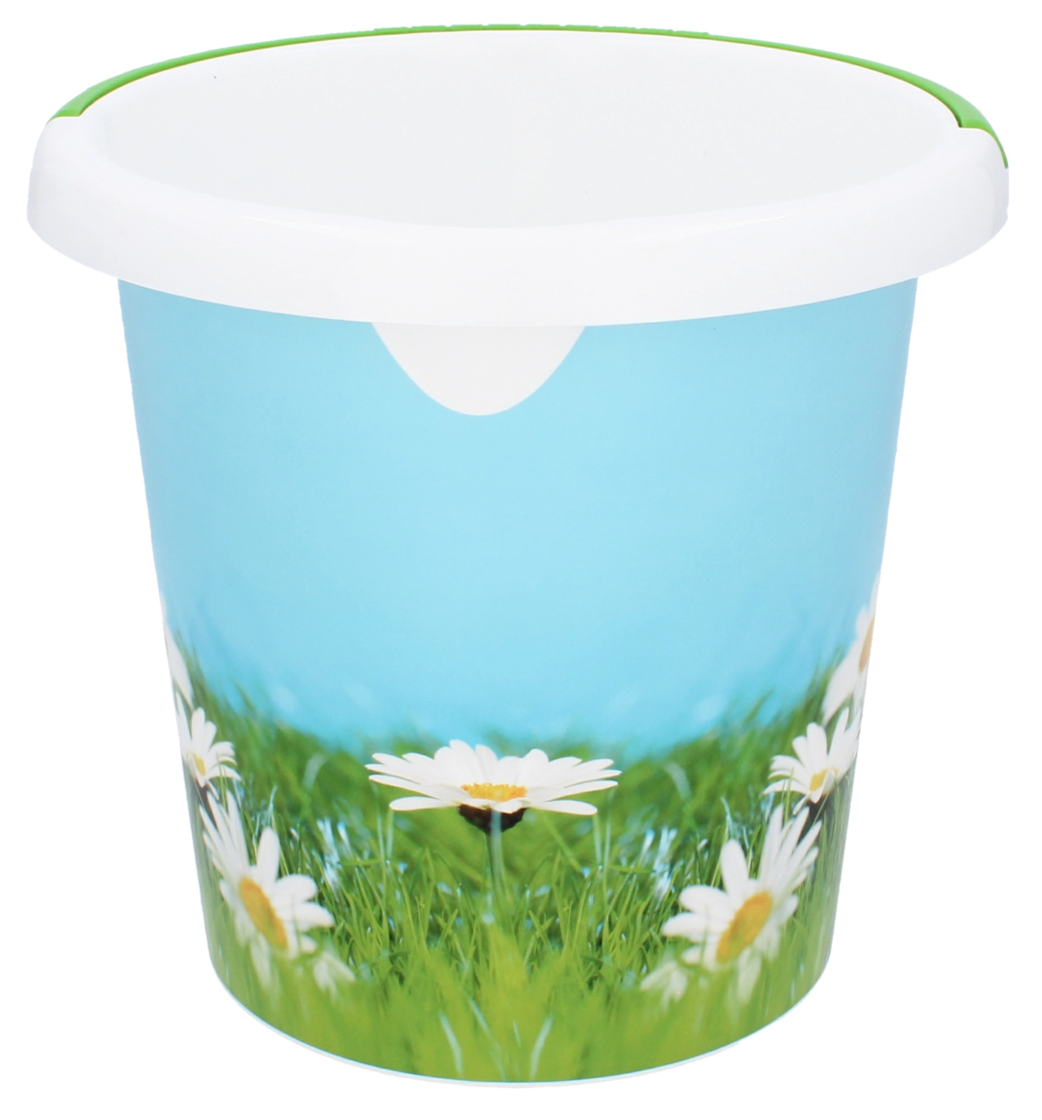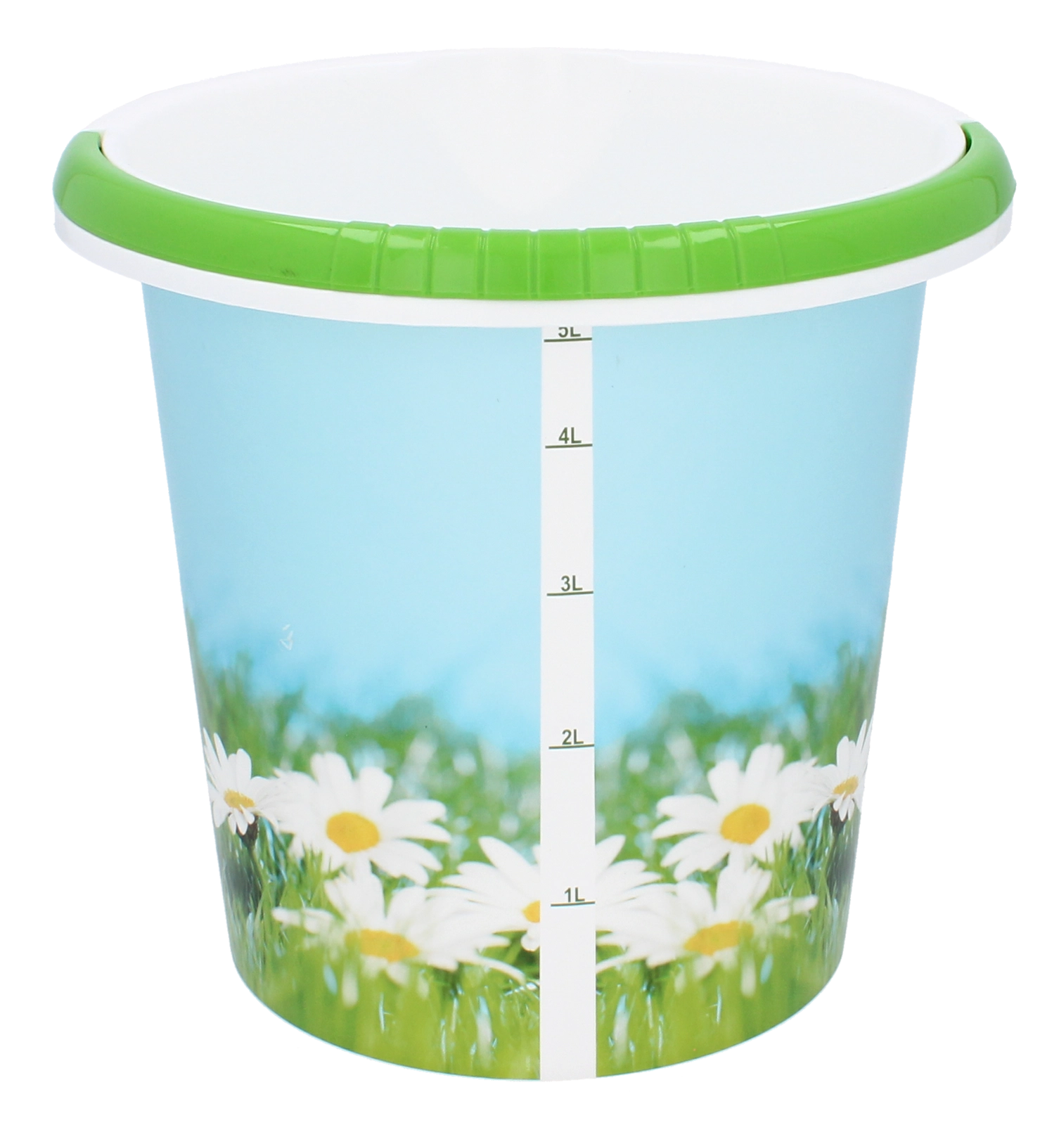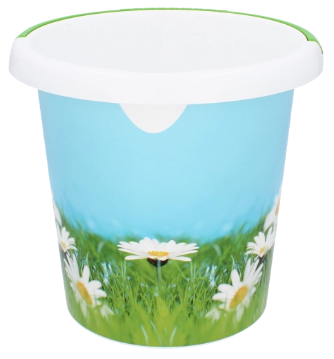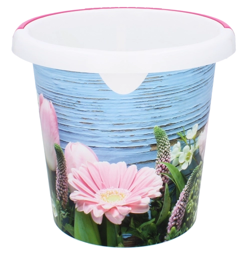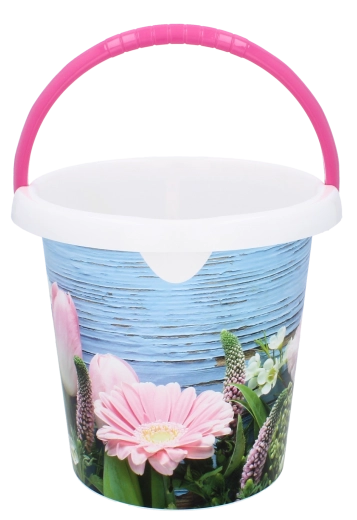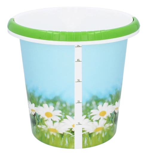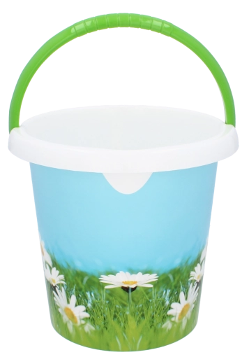 Praktyczny kształt z szeroką krawędzią ułatwia nalewanie wody, mieszanie roztworów oraz czyszczenie wnętrza wiadra bez rozlewania.