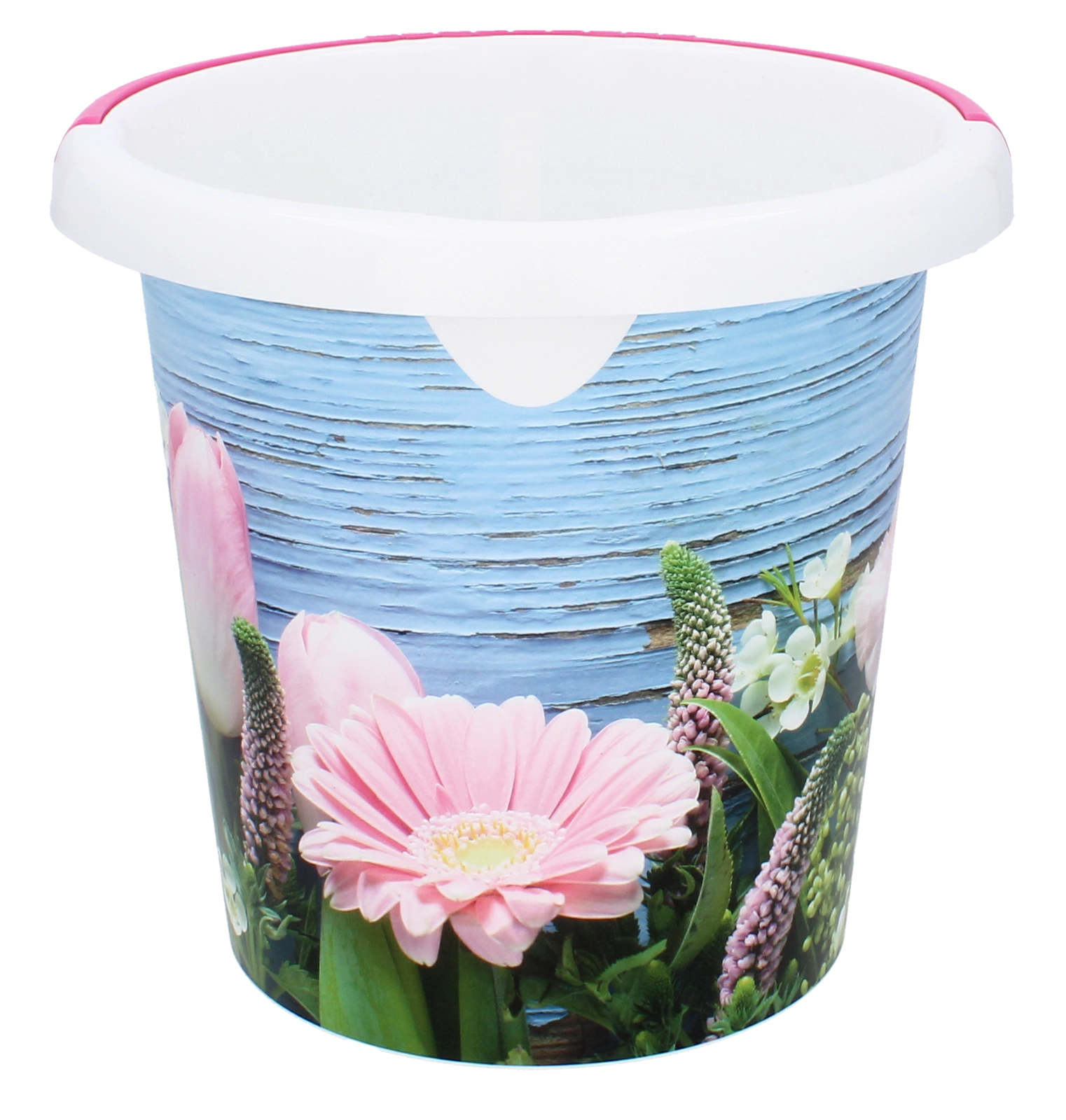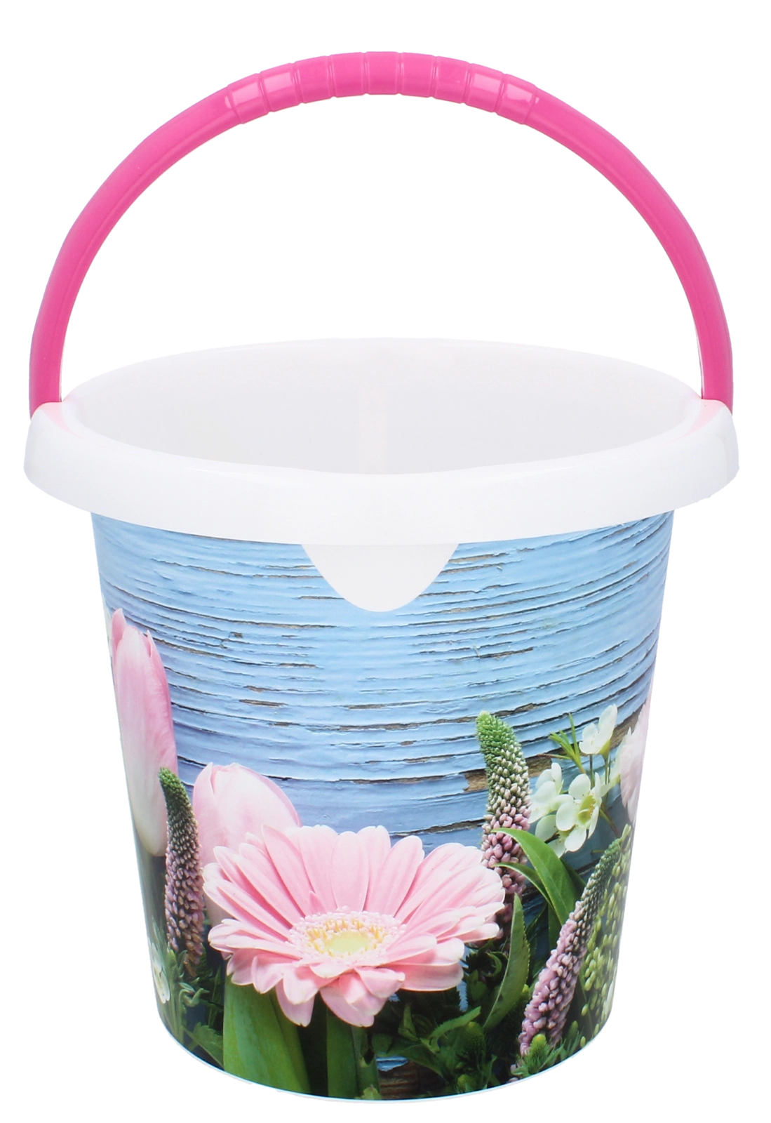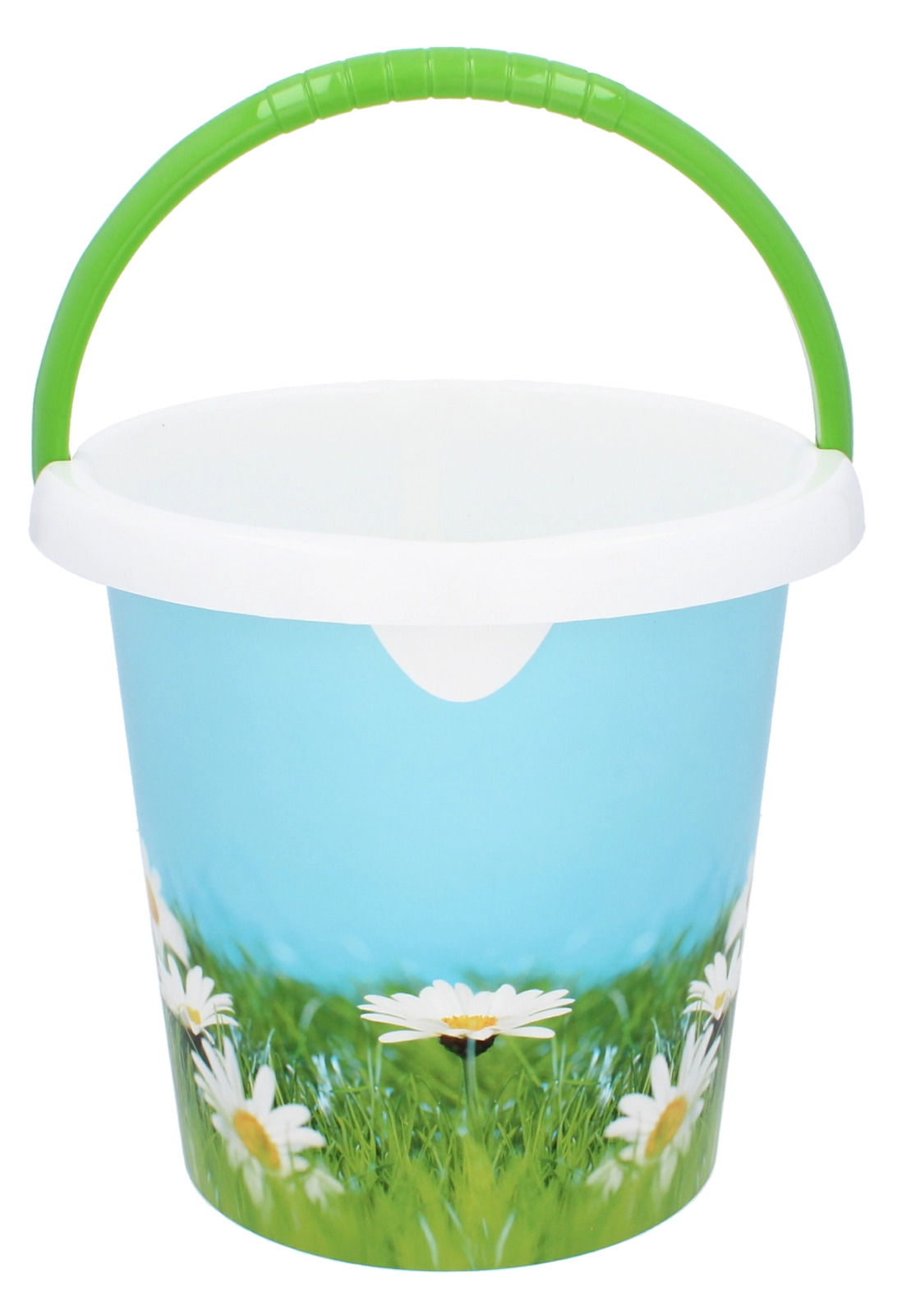 Praktyczny kształt z szeroką krawędzią ułatwia nalewanie wody, mieszanie roztworów oraz czyszczenie wnętrza wiadra bez rozlewania.