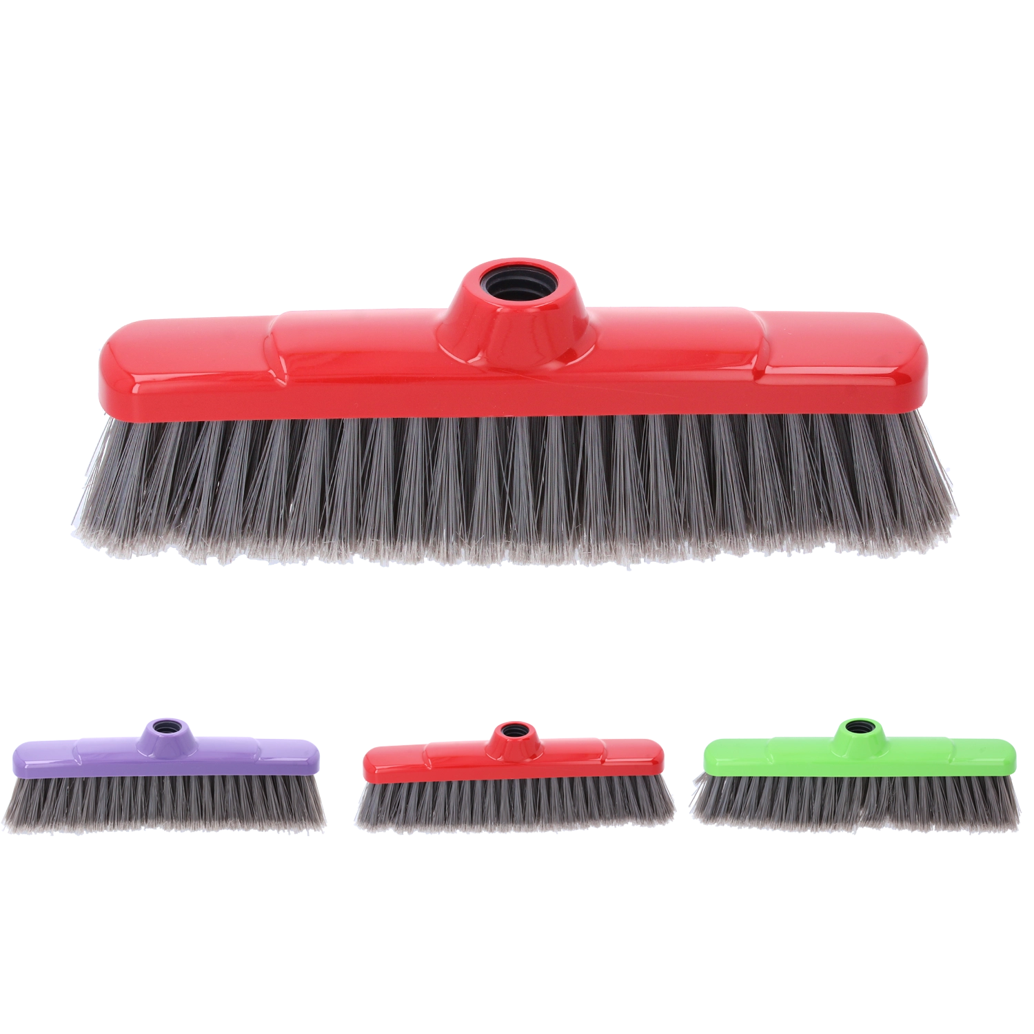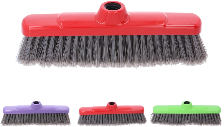 Praktyczny plastikowy uchwyt z otworem na gwint zapewnia pewne i stabilne połączenie ze standardowymi trzonkami. Kompaktowa szerokość części roboczej umożliwia wygodne manewrowanie w węższych przestrzeniach, na schodach czy tarasach. Kolorowy mix wysyłany jest losowo, więc miotłę łatwo dopasujesz do innych akcesoriów do sprzątania.
