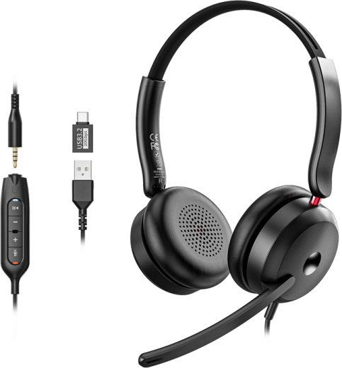Praktyczny panel sterowania na kablu pozwala zarządzać odtwarzaniem, głośnością i wyciszeniem mikrofonu, a wskaźnik LED jasno pokazuje jego status. Potrójne opcje połączeń zapewniają szeroką kompatybilność z PC, laptopami, konsolami i innymi urządzeniami — przez USB‑C lub klasyczny jack 3,5 mm. Długi przewód (ok. 1,8–1,9 m) daje swobodę ruchu przy biurku.